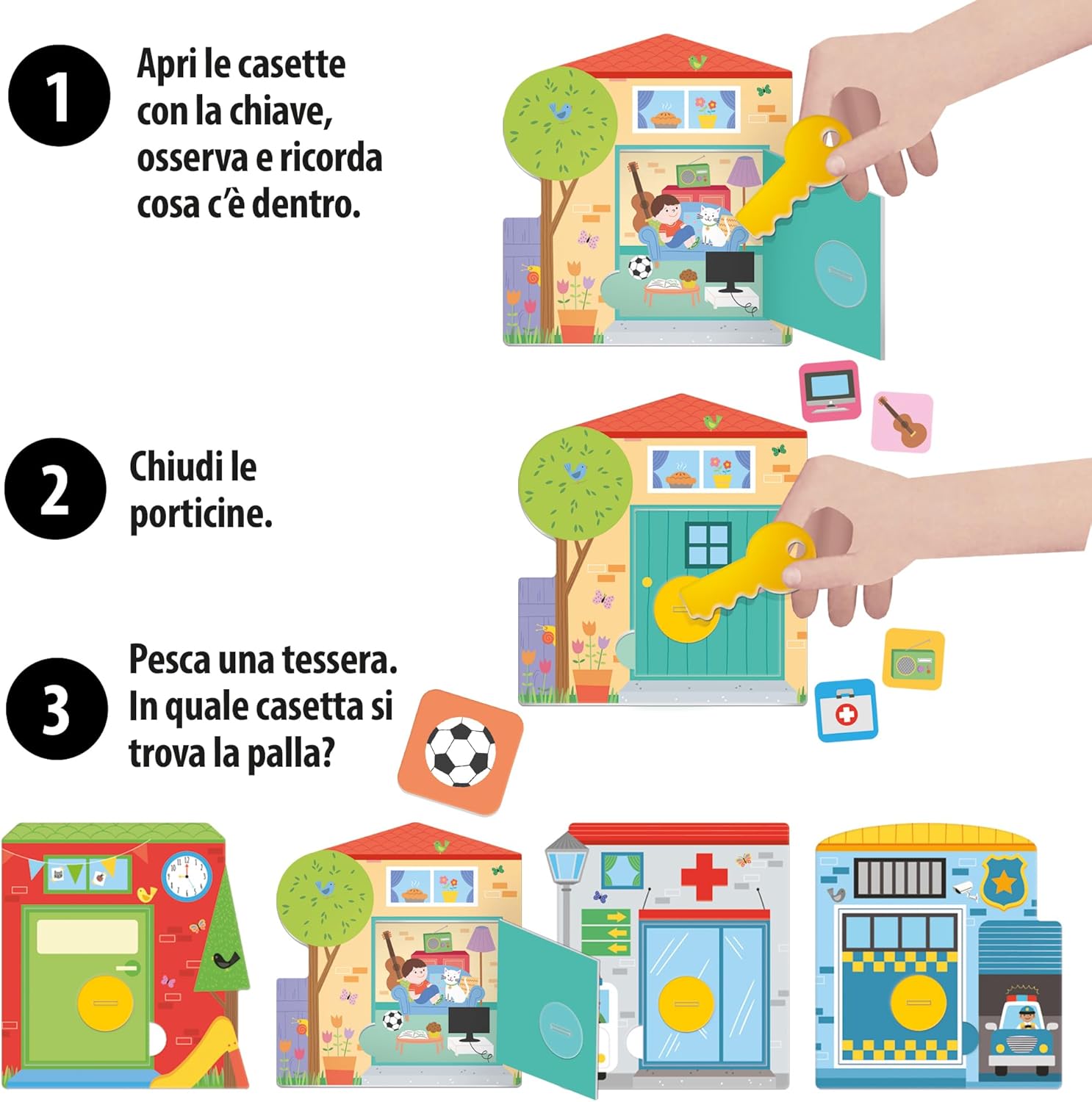 - AUSGEZEICHNETE INHALTE FÜR MEHRWEITE SPIELEN UND LERNSPASS - 4 Stadtgebäude mit Schloss, 1 Schlüssel aus Kunststoff, 20 Sucher-Karten zum Finden von Gegenständen, Anleitung.