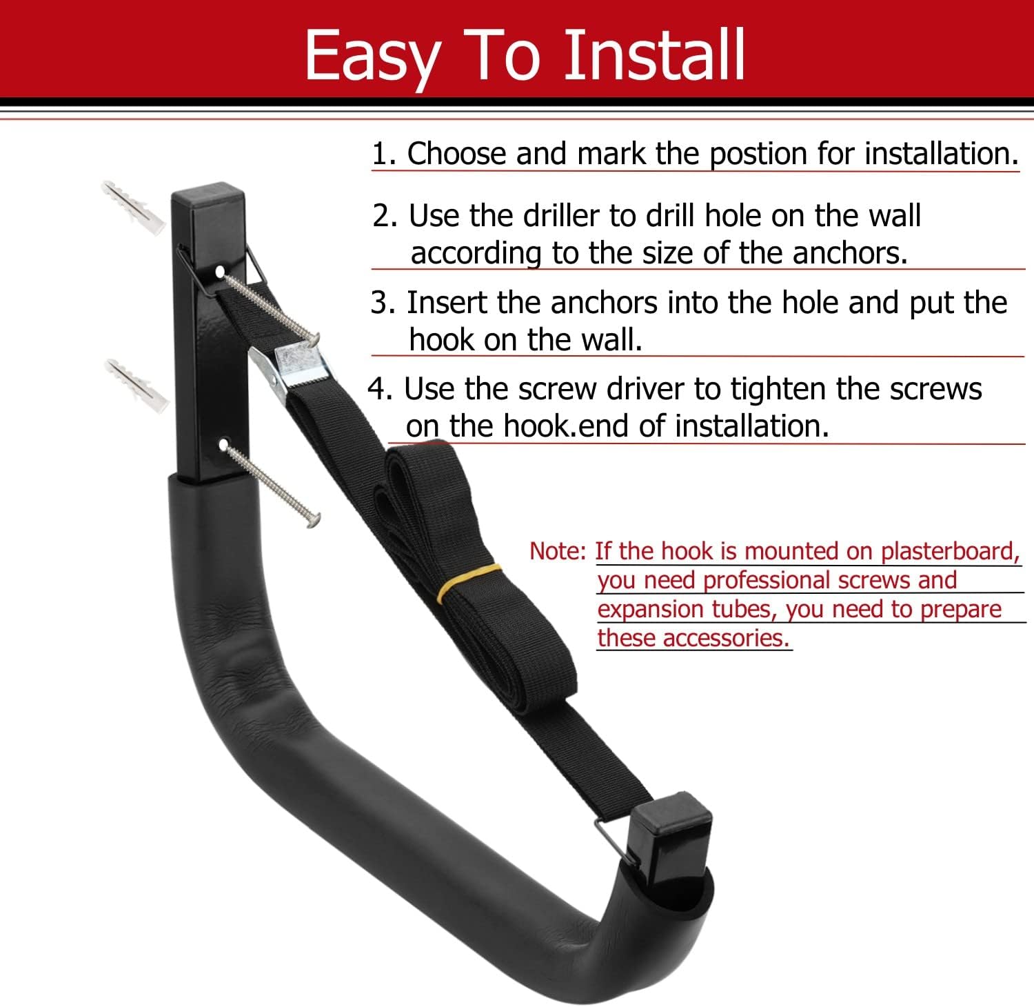 - 【68 KG TRAGFÄHIGKEIT】 38 cm Garagenaufbewahrungshaken können eine Vielzahl von grossen Werkzeugen aufnehmen, die für die Aufbewahrung grosser Gegenstände wie Kajak, Kanus, SUP, Snowboard, Skateboard, Surfbrett, Holz geeignet sind, was praktisch