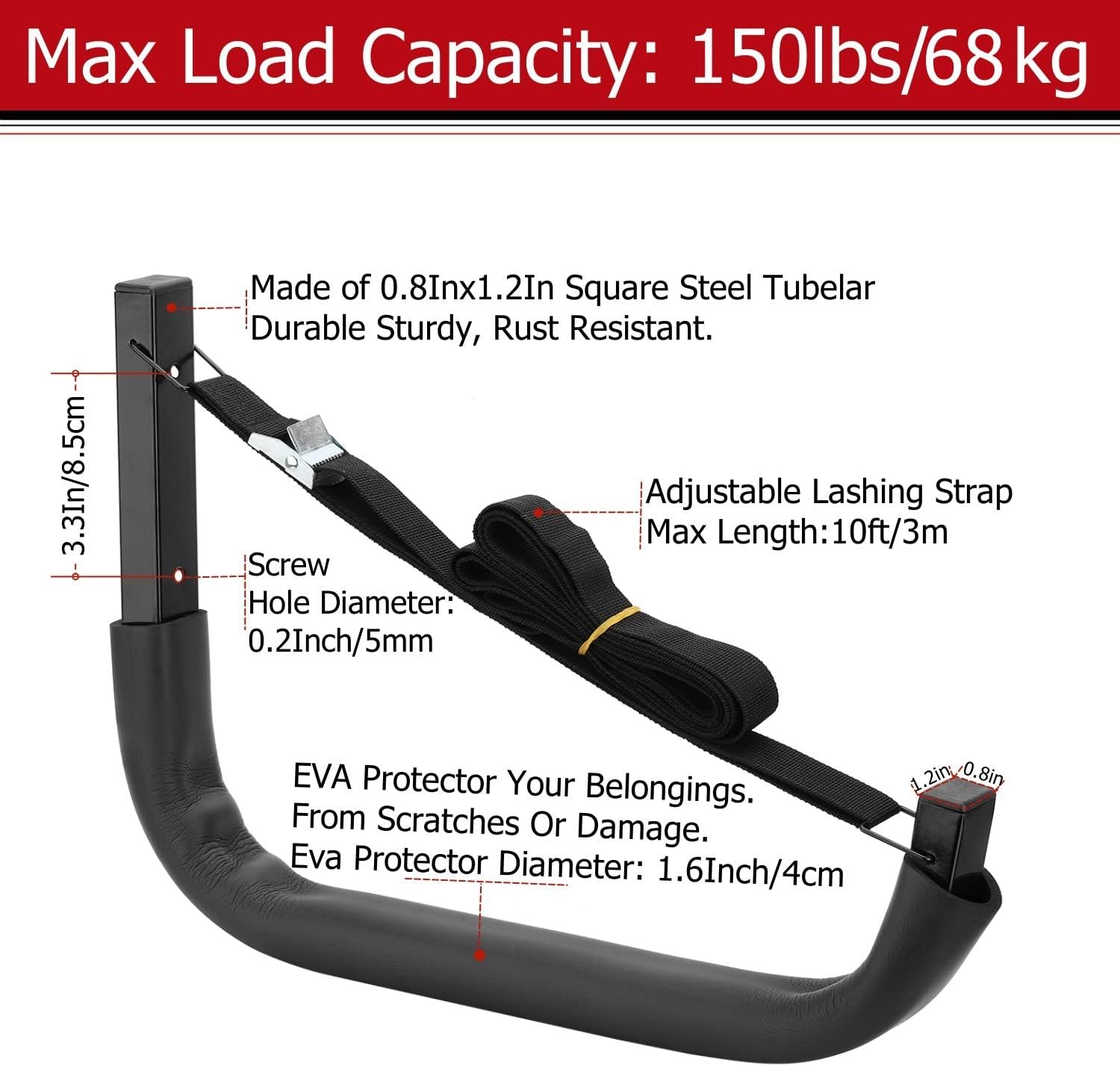 - 【STRAPAZIERFÄHIGE MATERIALIEN】Kajakhaken aus Vierkantrohrstahl und kein Schweissprozess machen den Kanuträger stark. Der schwarze, rutschfeste EVA-Arm ist nützlich zum Fixieren von Gegenständen und schützt die Oberfläche vor Kratzern oder