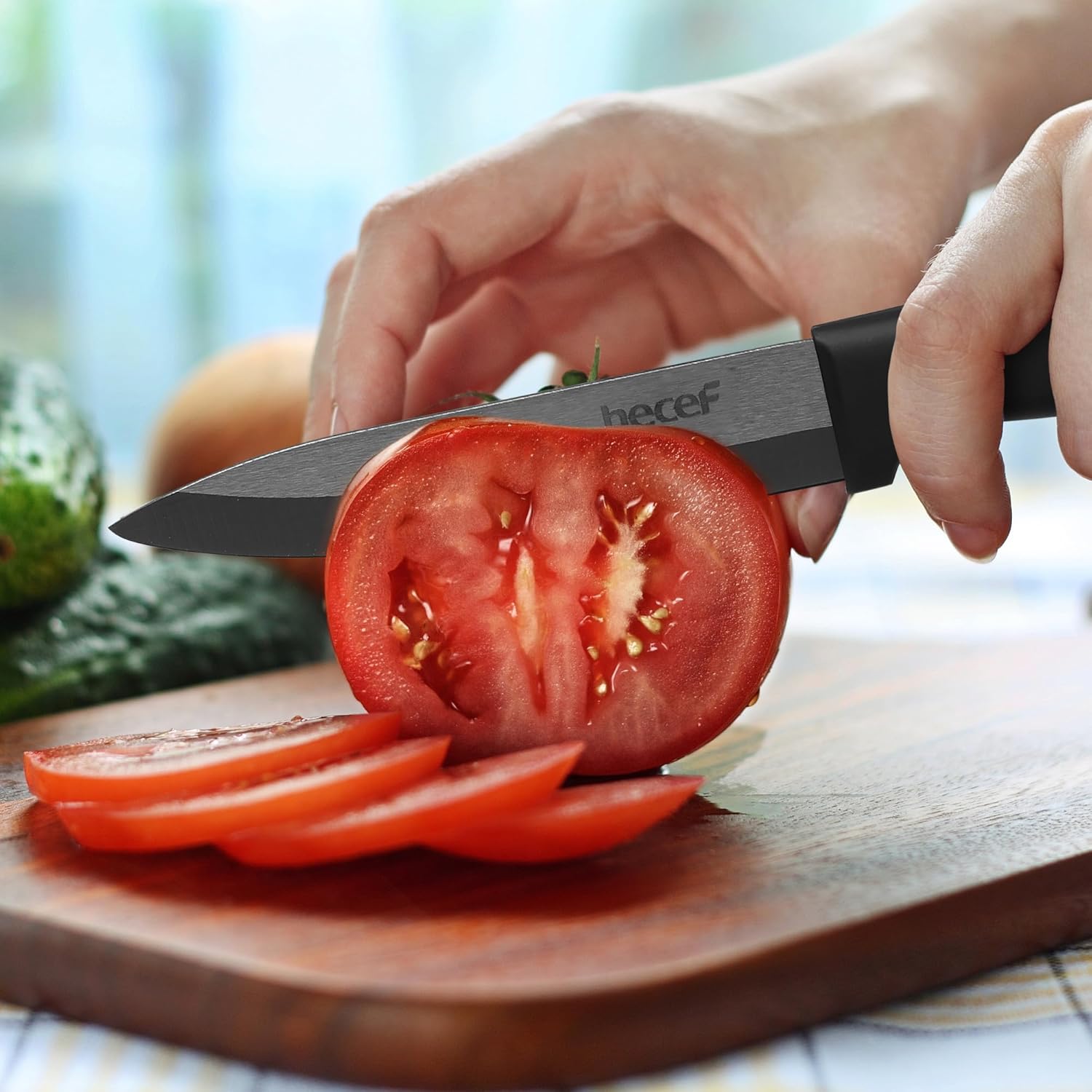 - Scharfe und leichte Klingen: Unsere Keramikmesser haben extrem scharfe Klingen, die für viele Gemüsesorten, Obst oder weiches Fleisch geeignet sind. Das ganze Messer ist leicht und bequem, was das Schneiden mühelos macht!