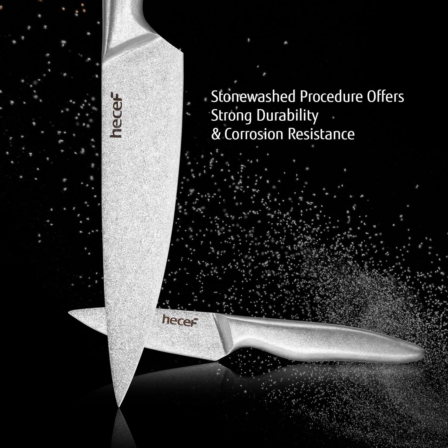 - Ganzmetallkonstruktion & Tapper Ground: Die Klinge besteht aus hochwertigem 2,2-2,5 mm scharfem Edelstahl. Alle Metallkonstruktionen sorgen für eine längere letzte Kante und verbessern die Haltbarkeit des Bestecks. Professionell geschärfte Klinge mit