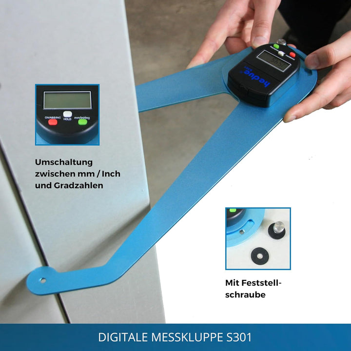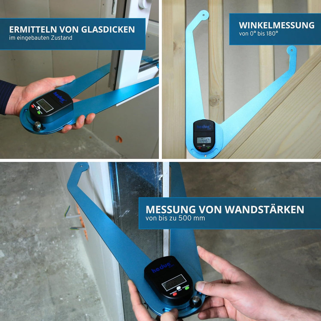 - VIELSEITIGE ANWENDUNGEN - Die Messkluppe kann für Messungen verschiedener Materialstärken verwendet werden, wie für Glasstärkenmessungen oder zur Bestimmung der Breite von Türzargen. Mit einem einfachen Knopfdruck wird sie zum Winkelmesser, um