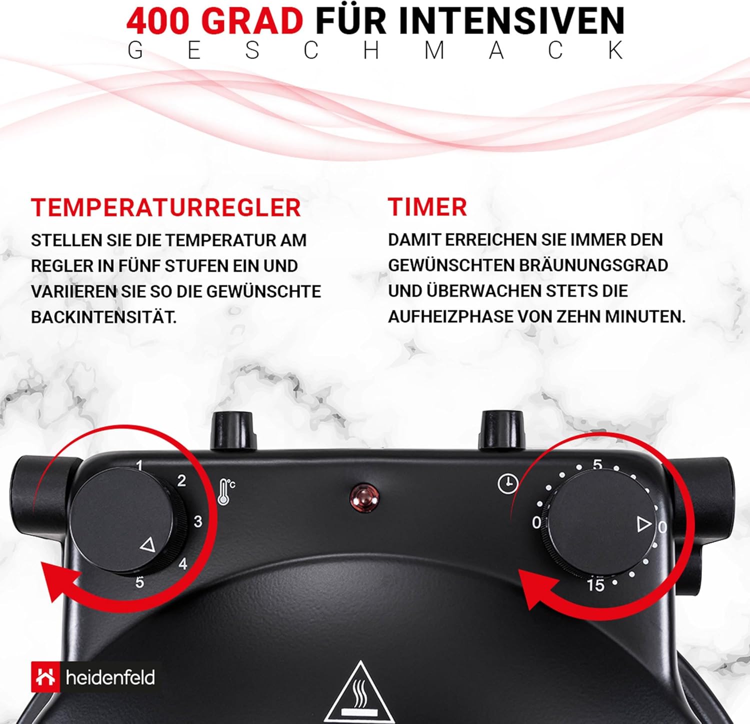 • ✔ Original Heidenfeld Pizzaofen ✔ Leistung ► 1200 Watt ✔ Grosses Sichtfenster aus Glas ► Kein Wärmeverlust