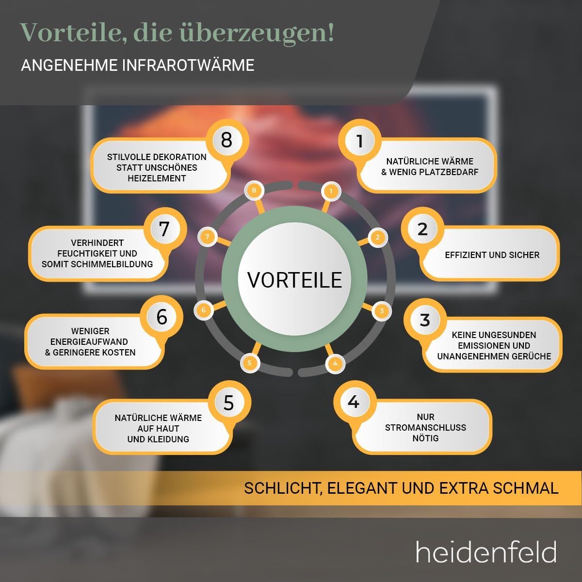 • โœ” Original Heidenfeld Infrarot Heizung โœ” Unglaubliche 10 Jahre Garantie โœ” Deutsche Qualitรคtsmarke โœ” TรœV & GS Prรผfzertifikat โœ” 100000 Stunden Lebensdauer โœ” Infrarotheizer