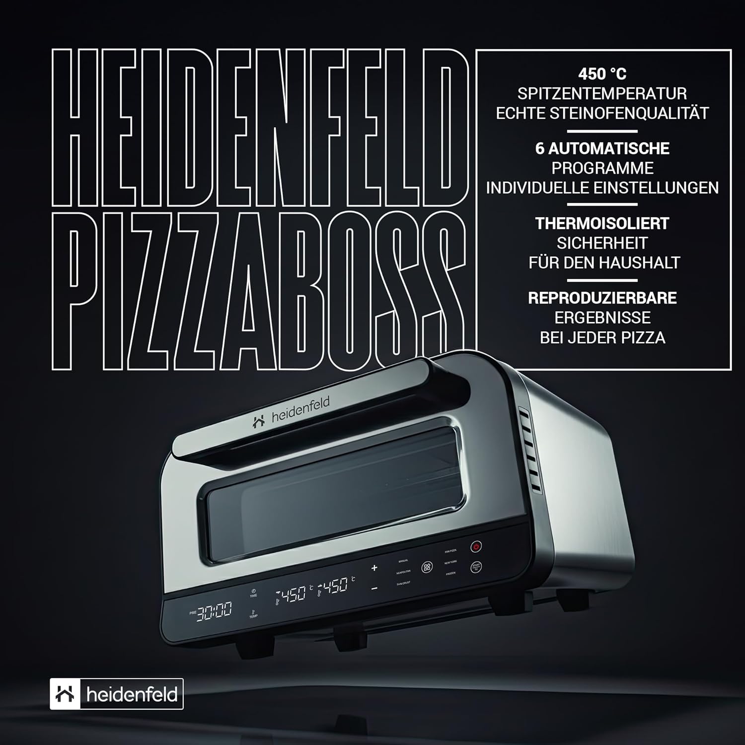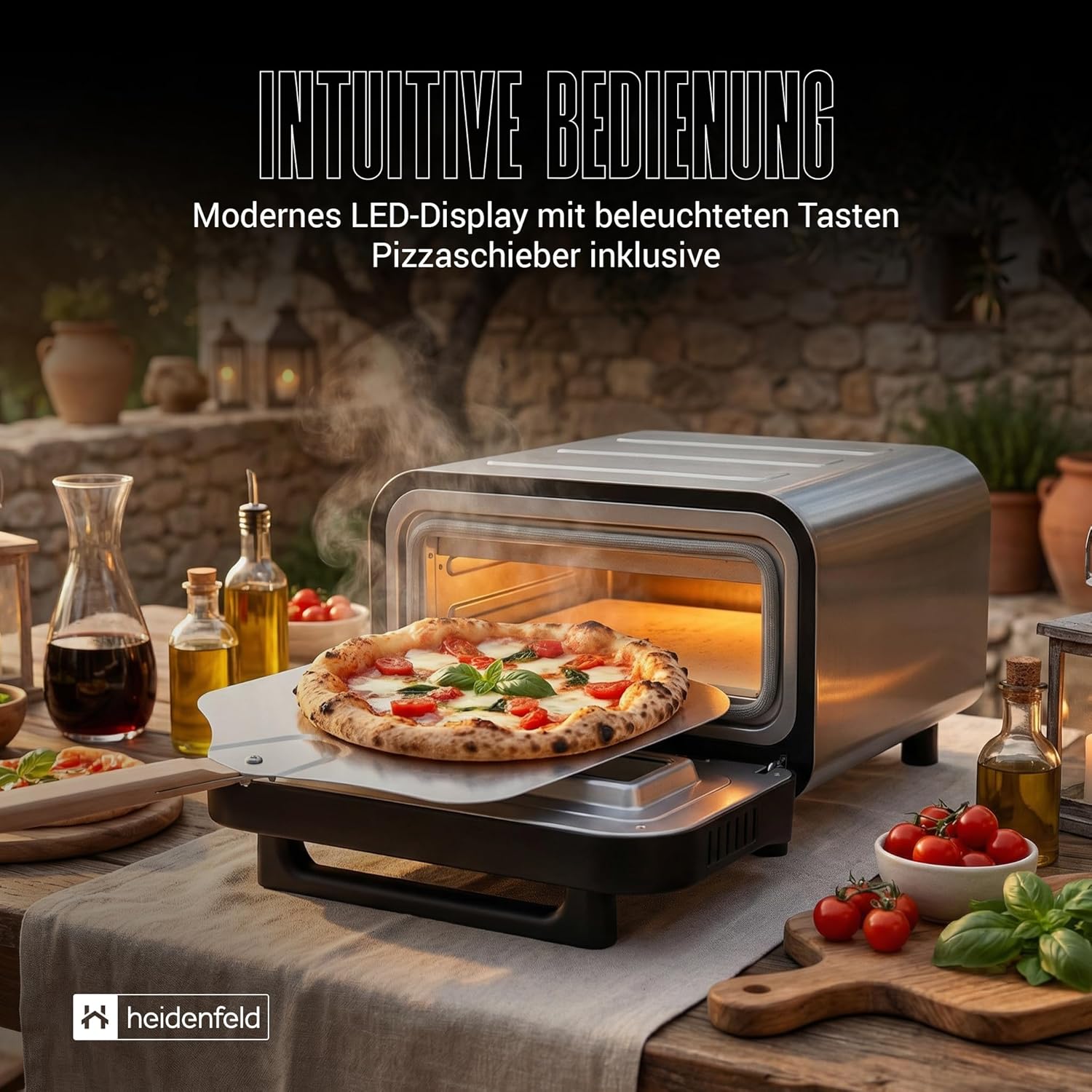 Heidenfeld Pizzaofen | 1850 Watt bis 450°C - Backofen inkl. Pizzastein & Pizzaschieber - Pizzaofen e