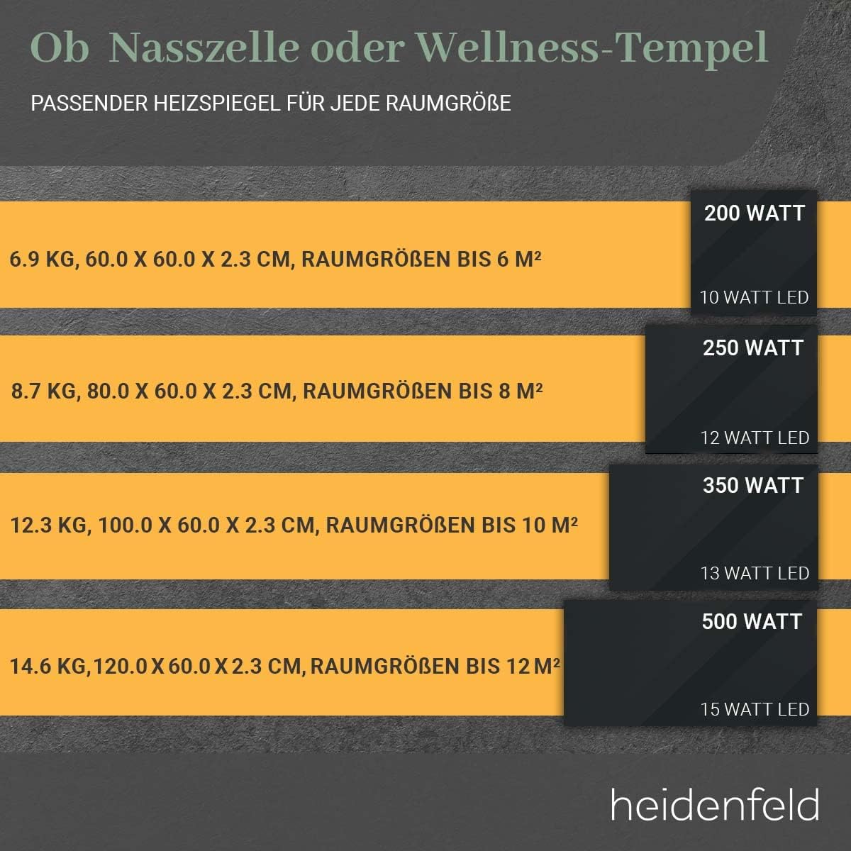 Heidenfeld Spiegel Infrarotheizung HF-HS200 mit Touchpanel | 𝟭𝟬 𝐉𝐀𝐇𝐑𝐄 π†π€π‘π€ππ“πˆπ„ - 200 Watt - 60 x 60
