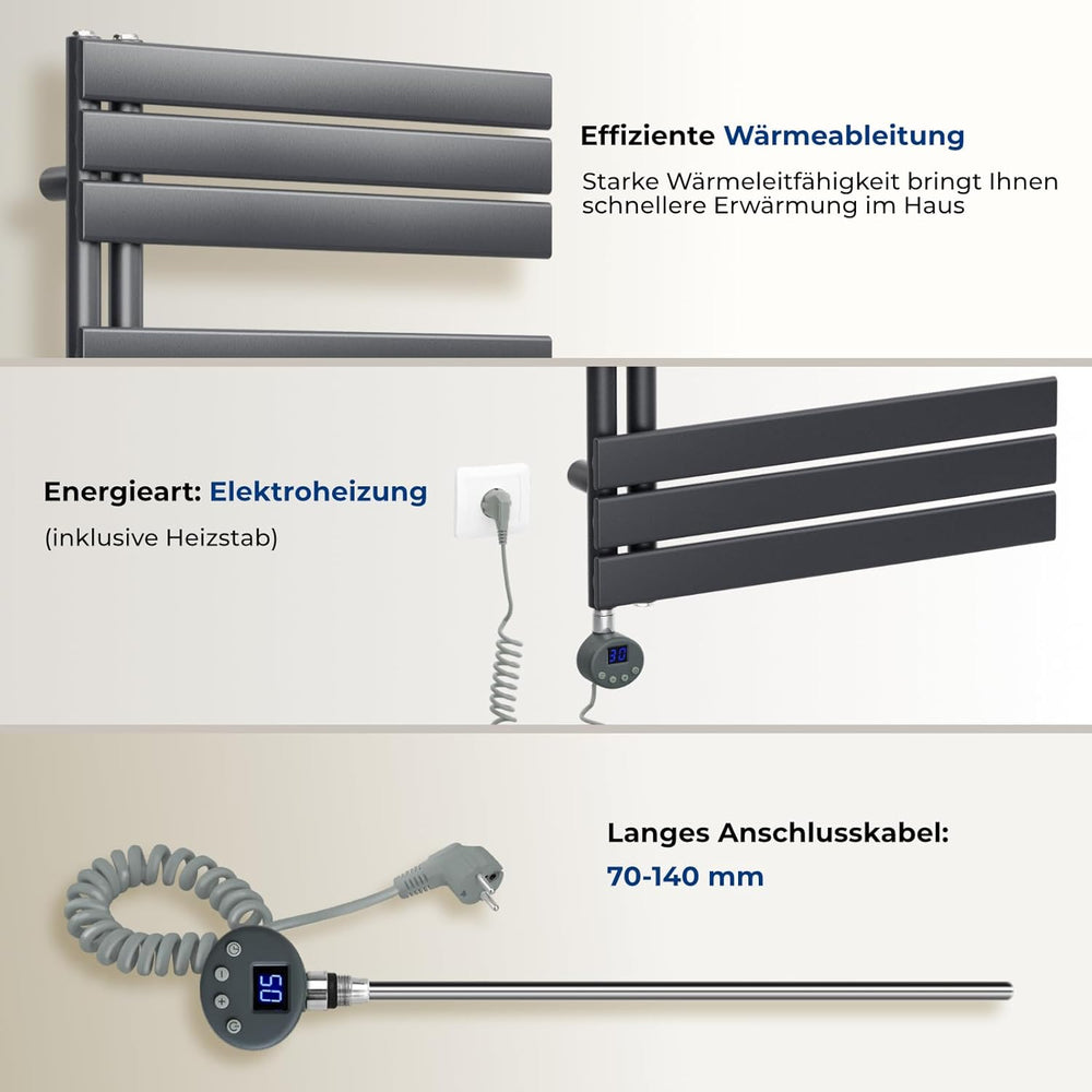- 【sicher und geschützt】: Das Heizelement stoppt automatisch bei der eingestellten Temperatur, um Überhitzung zu verhindern. Wasserdichtes Design und Überhitzungsschutz sorgen für eine sichere und sorgenfreie Nutzung Ihres handtuchheizkörper