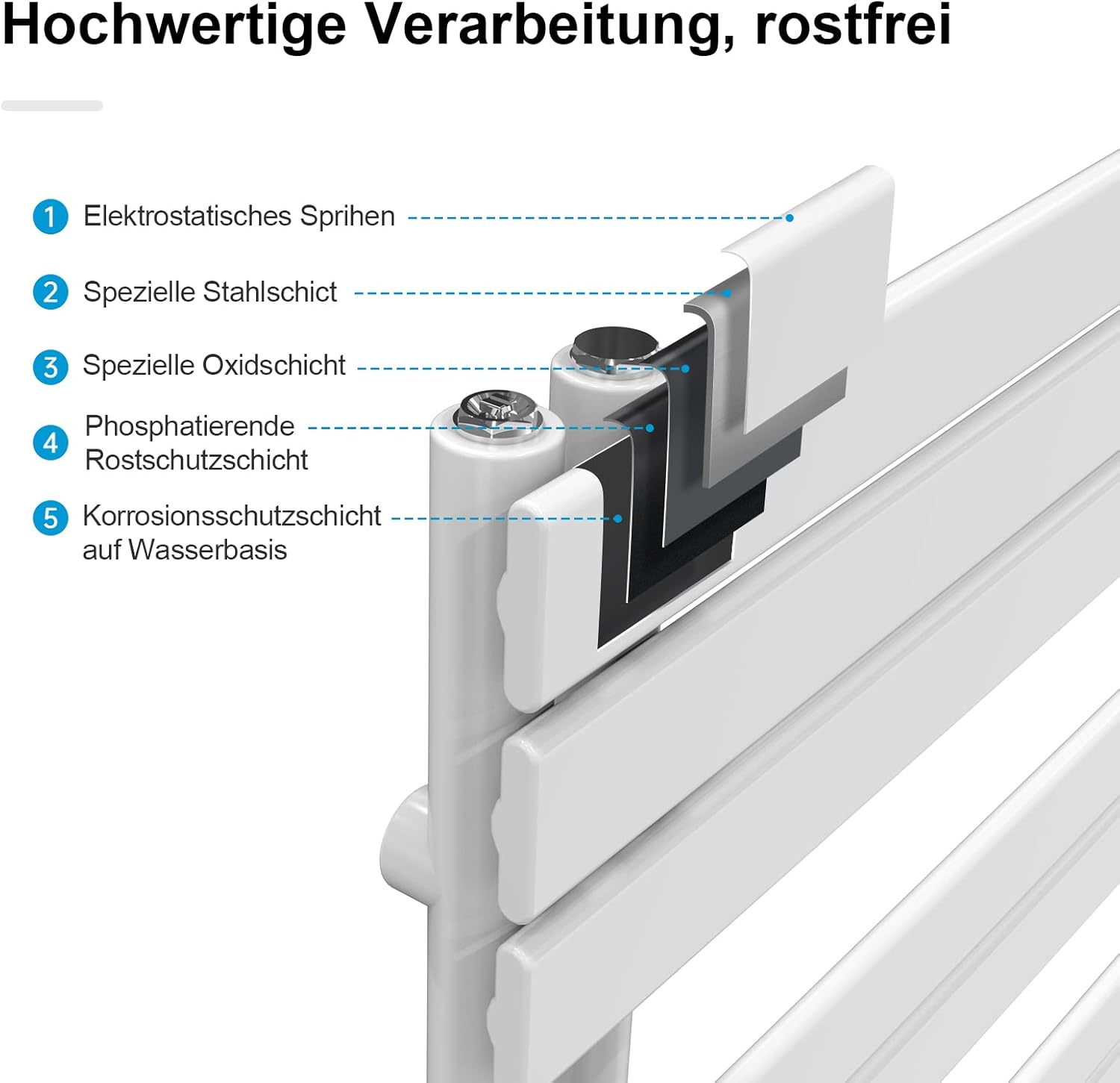 - Material des Handtuchheizkörpers:SPCC, Hochwertiger kohlenstoffarmer Stahl, Effiziente.