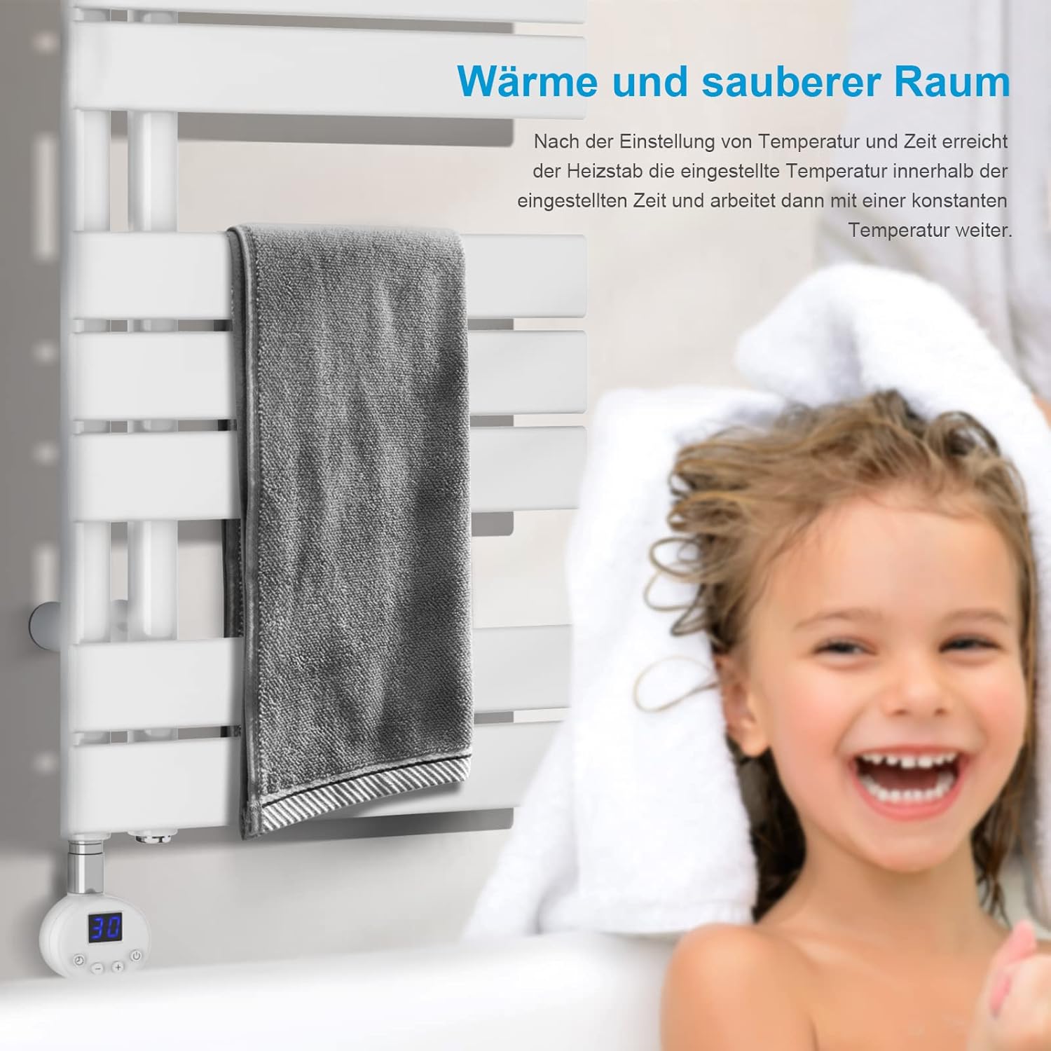 - Sicherheitsschutz: Der Badheizkörper ist mit einem Heizstab mit eingebautem Überhitzungsschutz ausgestattet, der das Heizen automatisch stoppt, wenn der eingestellte Wert erreicht ist, um die Sicherheit beim Heizen zu gewährleisten.