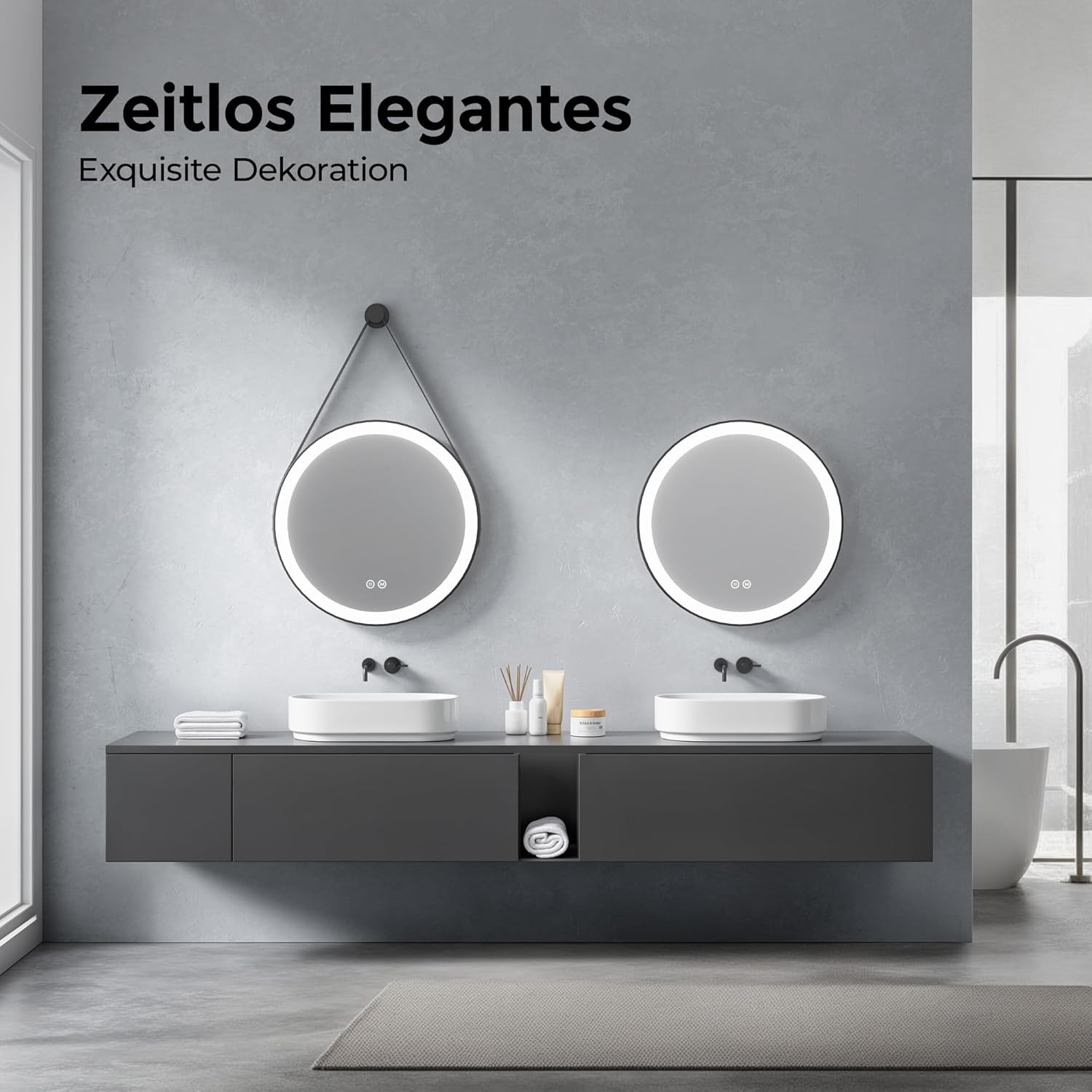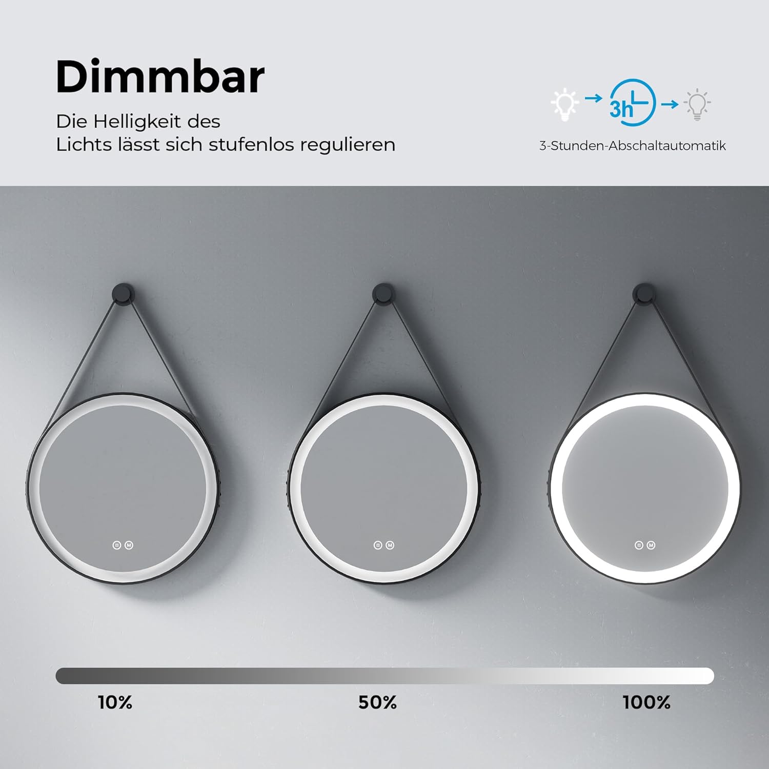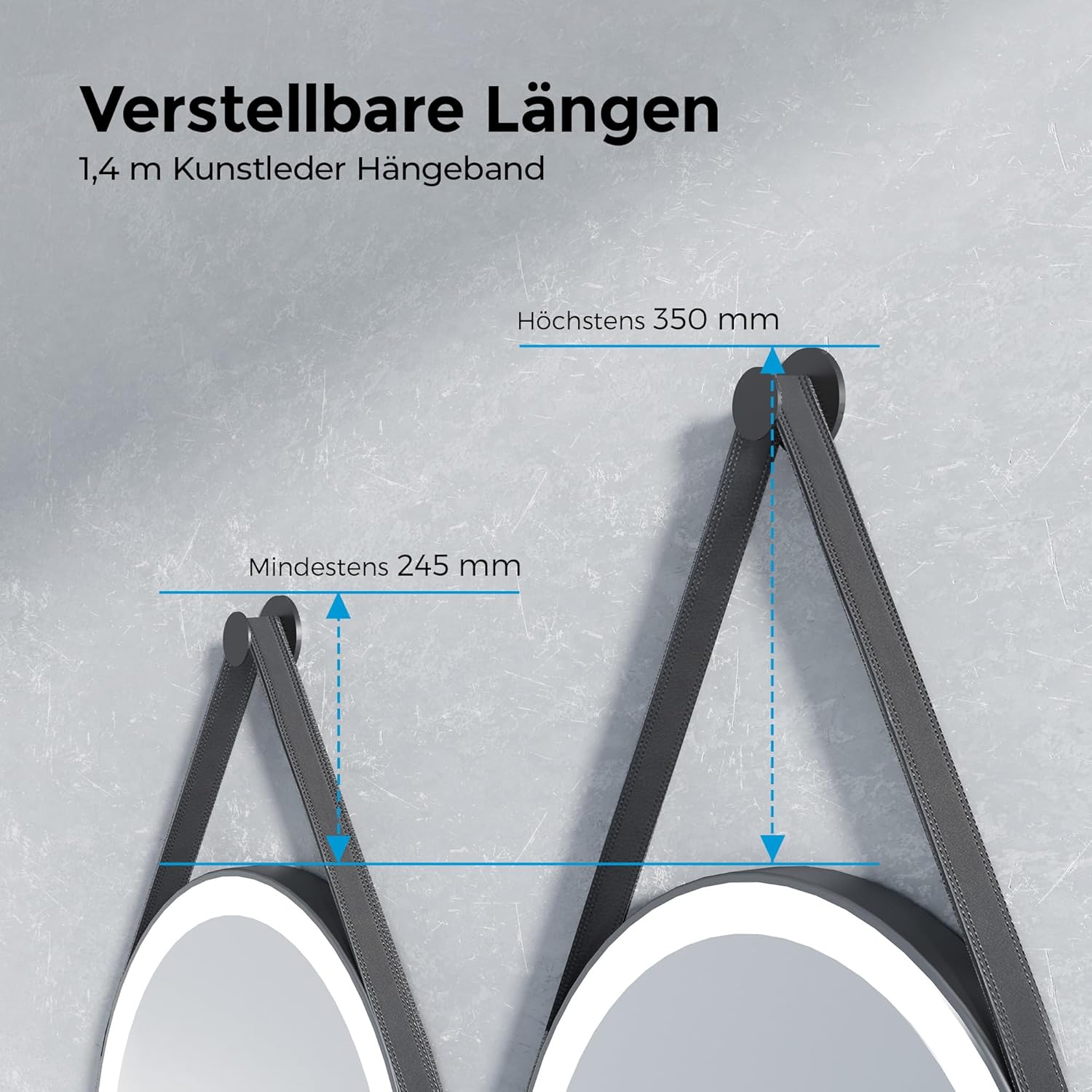 - 【Zusätzliche Überraschung】Das abnehmbare und einstellbar Lederband(1.4m) verleiht Badezimmer Spiegel mit Beleuchtung eine exquisite Dekoration, die sowohl stilvoll als auch praktisch ist und eine mühelose Aufhängung in jedem Raum ermöglicht. Die