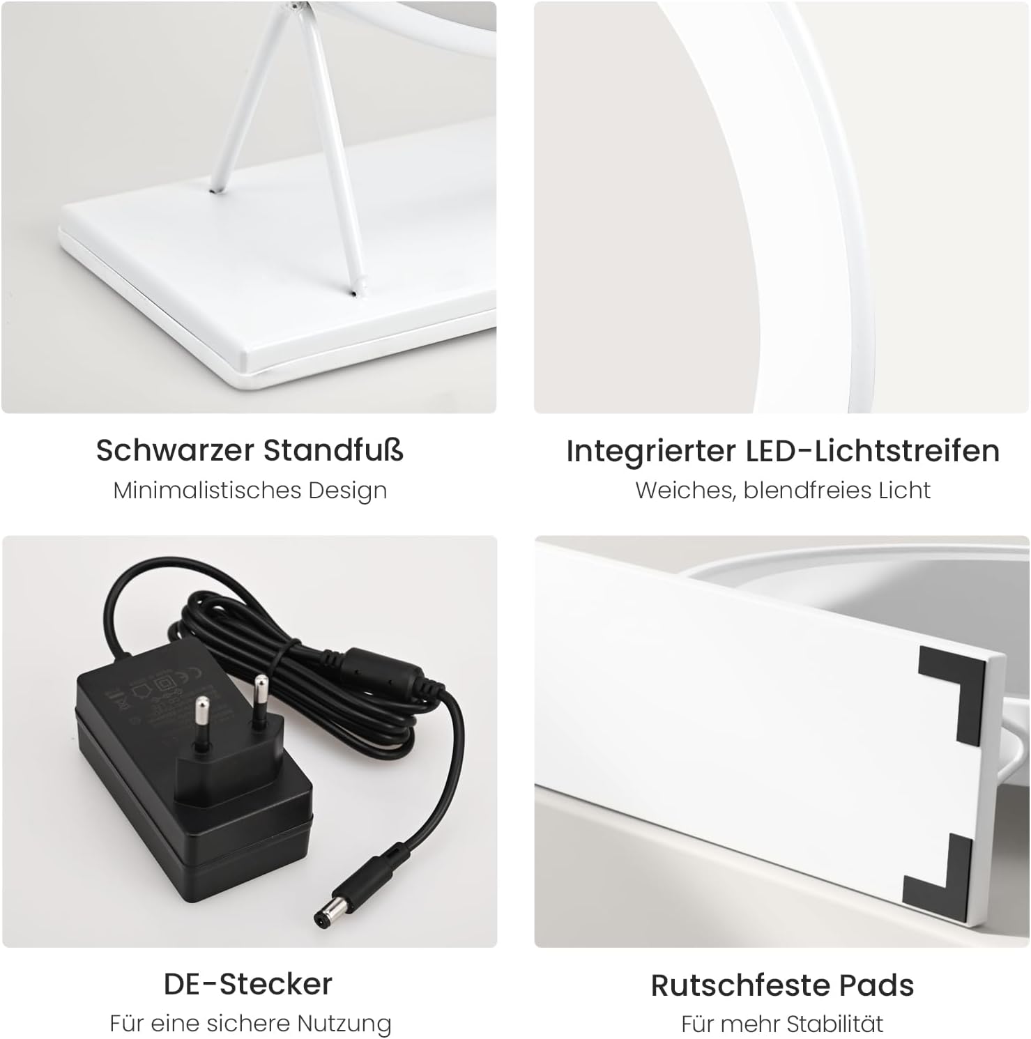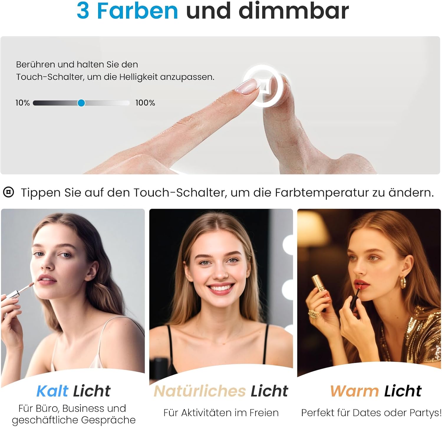- [LED-Beleuchtung] 3 Lichtfarben zur Auswahl - warmweiss (3000K), neutral (4000K) und kaltweiss (6500K); einstellbare Helligkeit - kann auf verschiedene Helligkeitsstufen eingestellt werden, um Ihre Make-up-Details besser zu berücksichtigen.