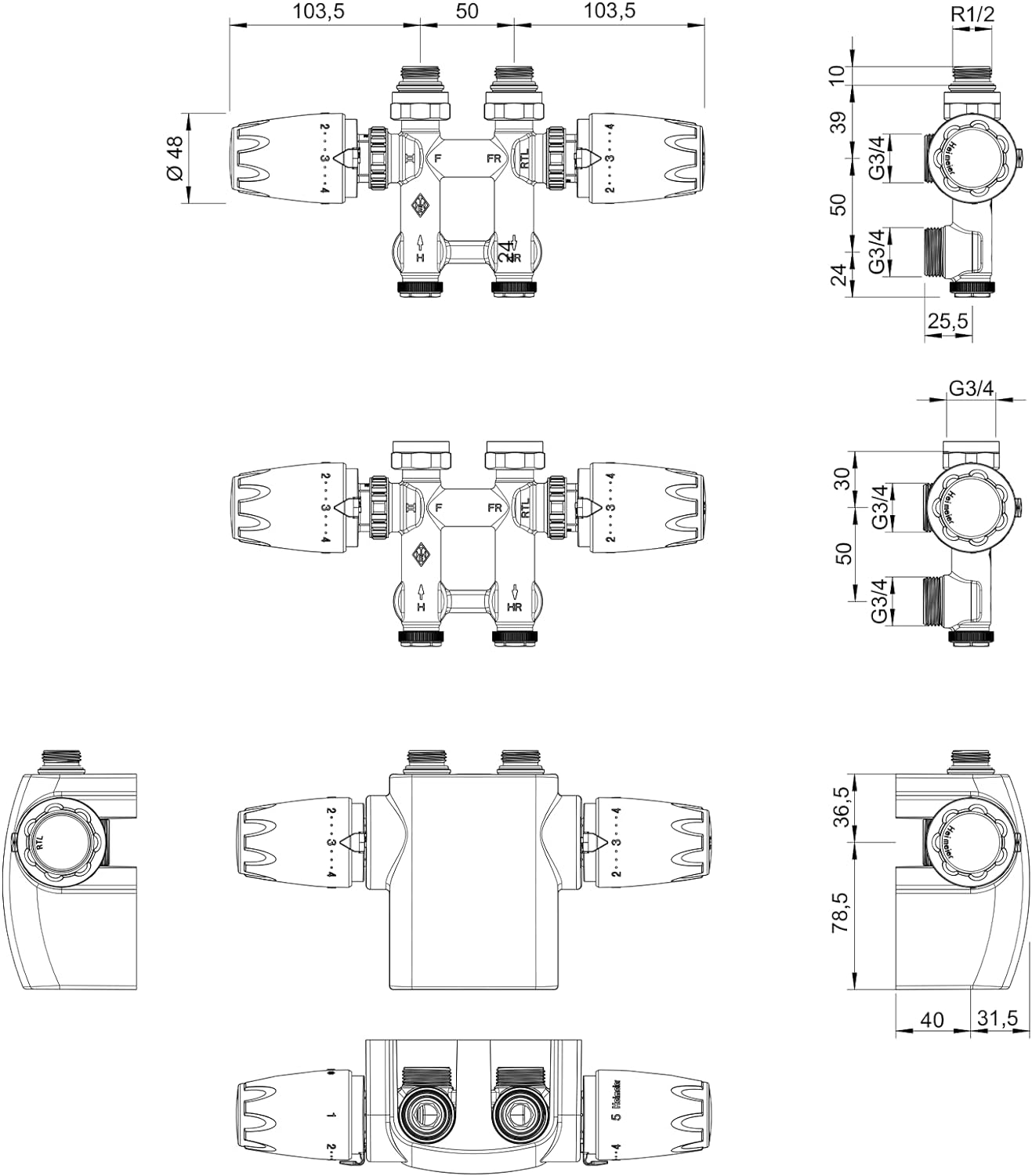 - Heimeier Multilux 4-F-Set für Fussbodenheizung und Heizkörper dient zur Raumtemperaturregelung und Rücklauftemperaturbegrenzung