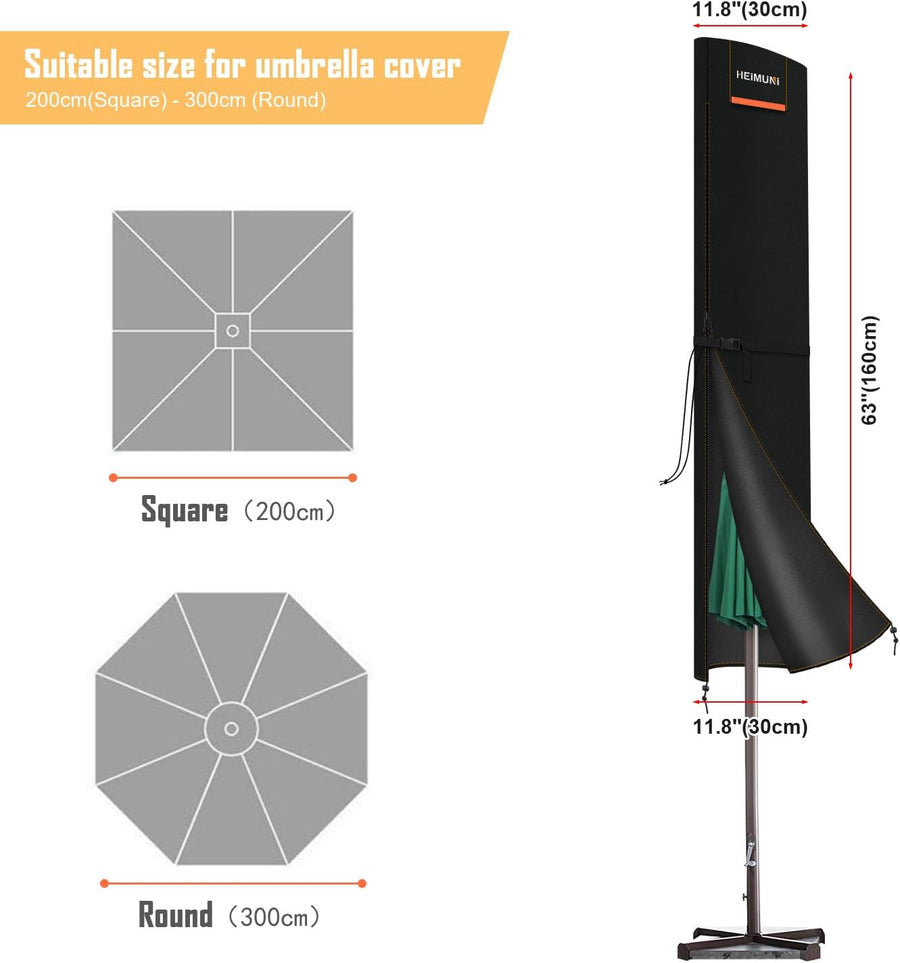 - 【Perfekte Grösse】Die Grösse dieser Sonnenschirm Schutzhülle ist: 160 cm (H) x 30 cm (oben) / 30 cm (Mitte) / 30 cm (unten), geeignet für quadratische Sonnenschirme bis zu 200cm Durchmesser und runde Sonnenschirme bis zu 300cm Durchmesser. Bitte