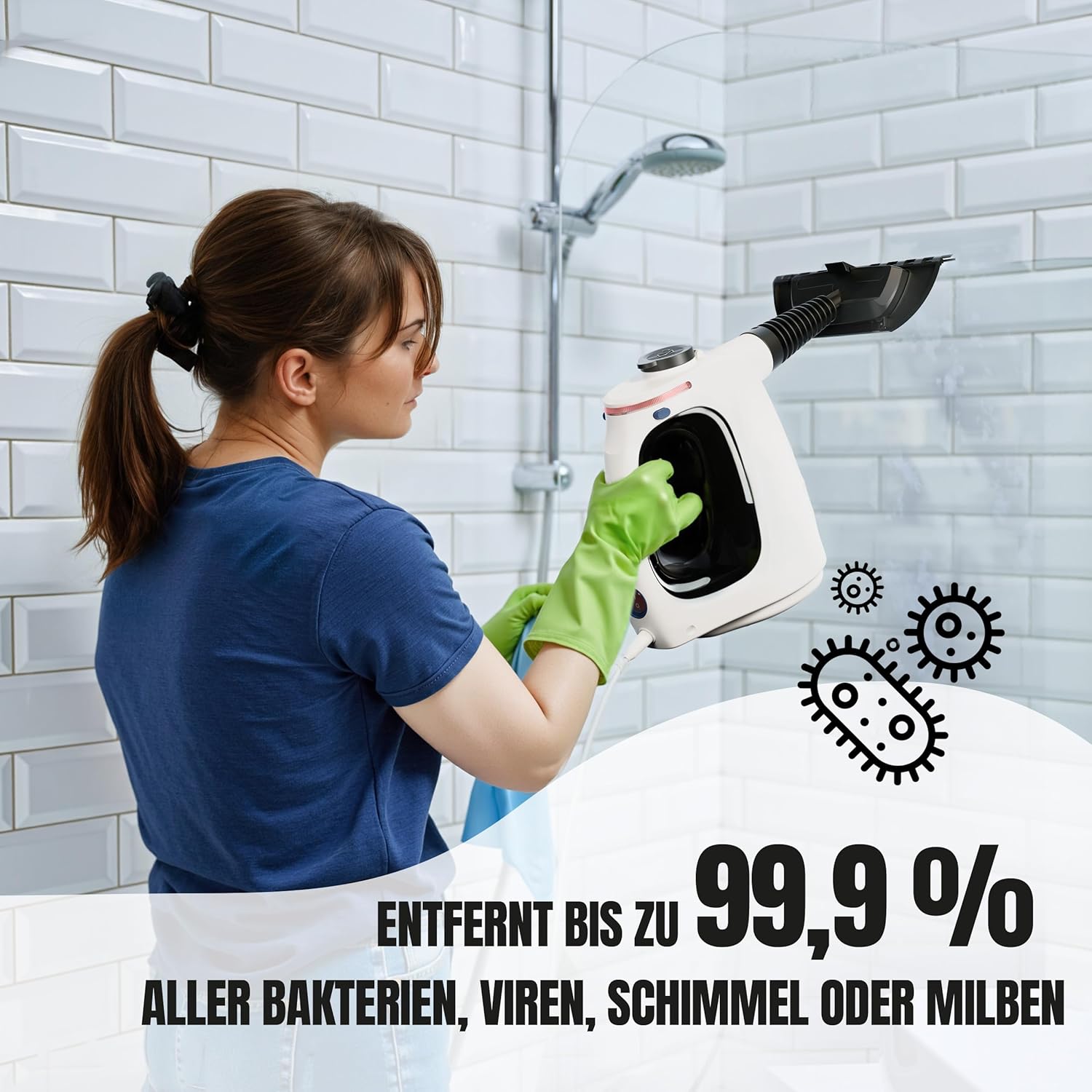 - 💪Leistungsstark: Dank 1350 W Leistung ist der Dampfreiniger schnell innerhalb von nur 5 min. einsatzbereit. Dank 3,0 Bar Dampfdruck reinigen Sie verschiedene Oberflächen mit bis zu 110°C sehr mühelos und gründlich.