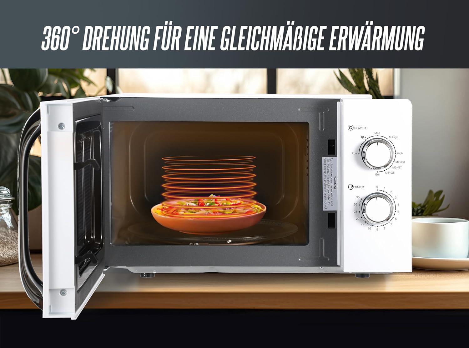 - ⭐Kompakt – Dank des schlanken Design ist die Mikrowelle sowohl Zuhause als auch im Büro oder Camping bestens einsetzbar. Durch die Kabellänge von 85 cm kann die Mikrowelle auch in Ecken platziert werden, die nicht unmittelbar im Bereich einer