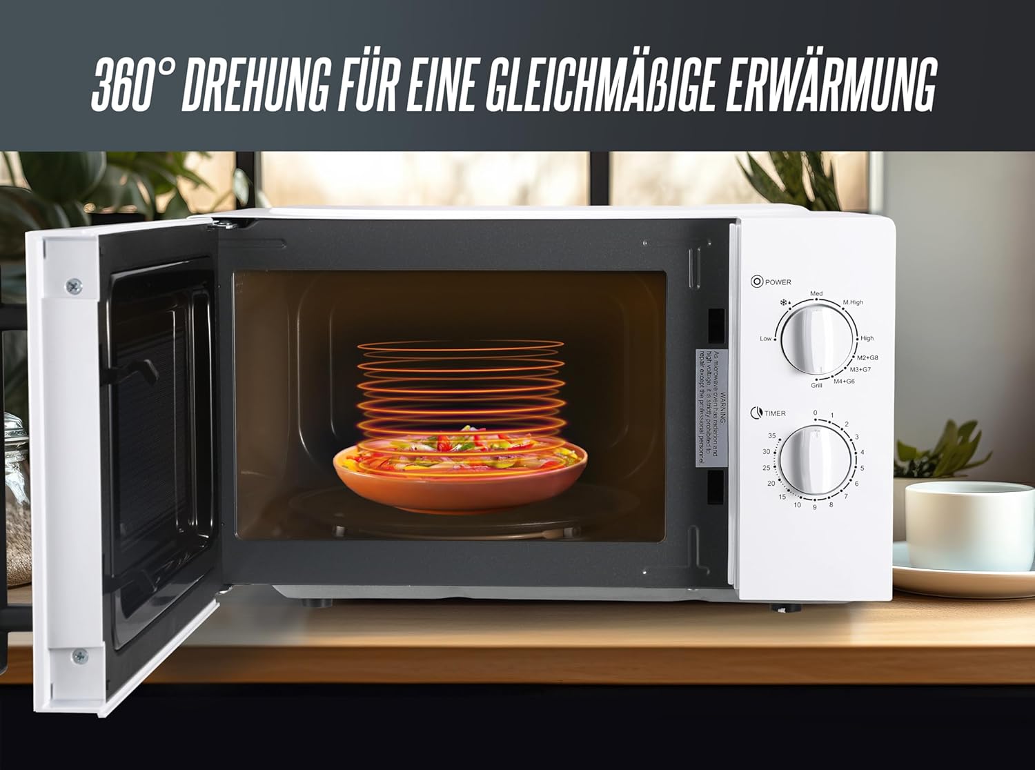 - ⭐ Kompakt – Dank des schlanken Design ist die Mikrowelle sowohl Zuhause als auch im Büro oder Camping bestens einsetzbar. Durch die Kabellänge von 85 cm kann die Mikrowelle auch in Ecken platziert werden, die nicht unmittelbar im Bereich einer