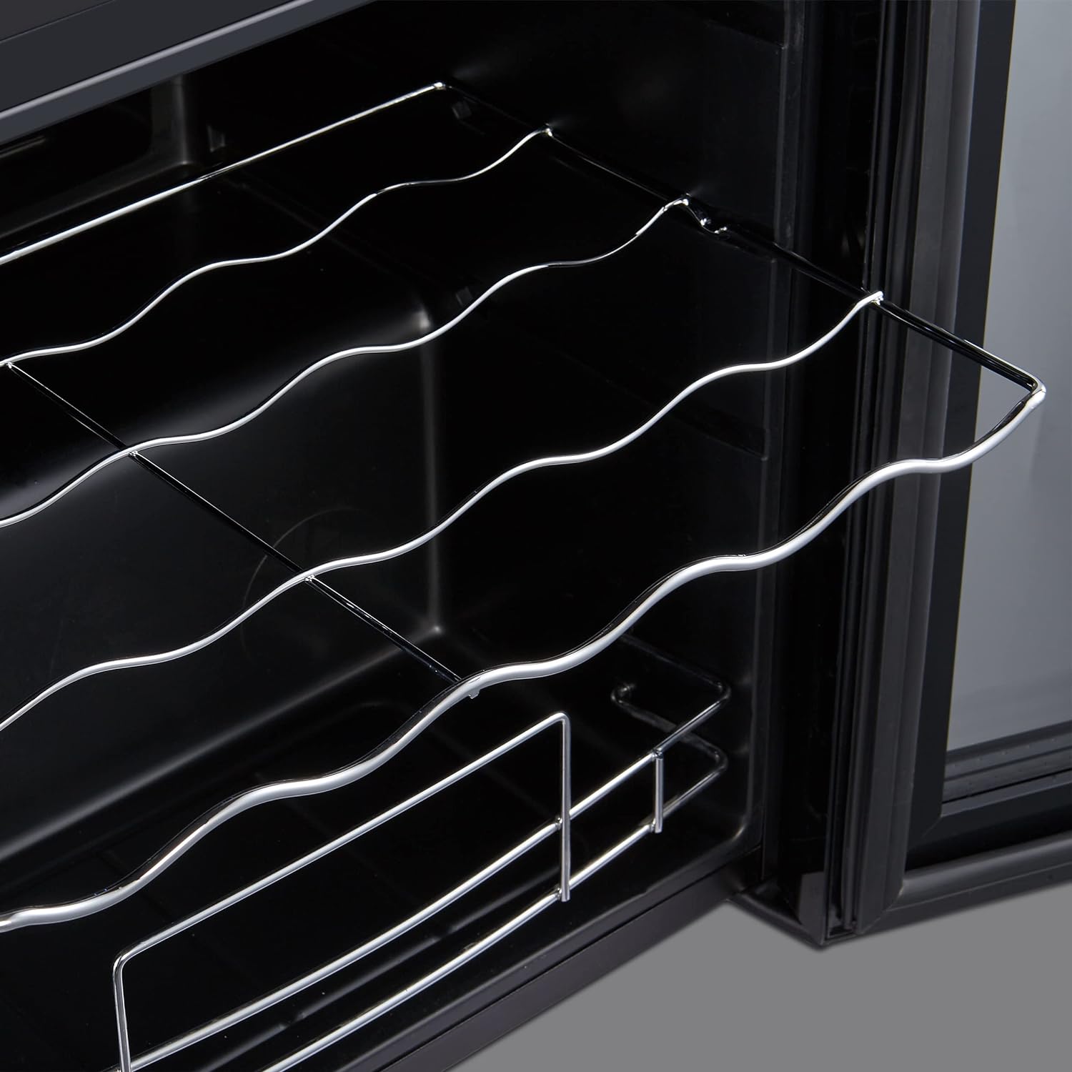 - 💪 Platz für 18 Flaschen: Dank des 50 Liter Volumens können bis zu 18 Flaschen deiner Wahl auf 6 Metallablagen gelagert werden. Eine schräge Ablage am Boden des Kühlschrankes, ist für die besondere Präsentation deiner Sammlung optimal geeignet.