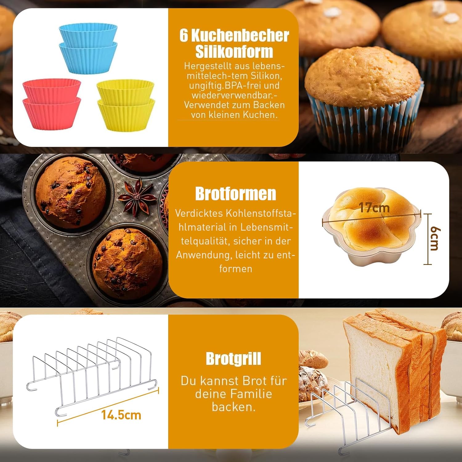 - 【19 Stück Airfryer Heissluftfritteuse Zubehör Set-10.4L】 der speziell für die Ninja Foodi AF500EU Air Fryer entwickelt wurde, Zubehör Heissluftfritteuse für Ninja Set enthält: Silikonform für Heissluftfritteuse (2 x 5,2 L & 1 x 10,4 L), 6