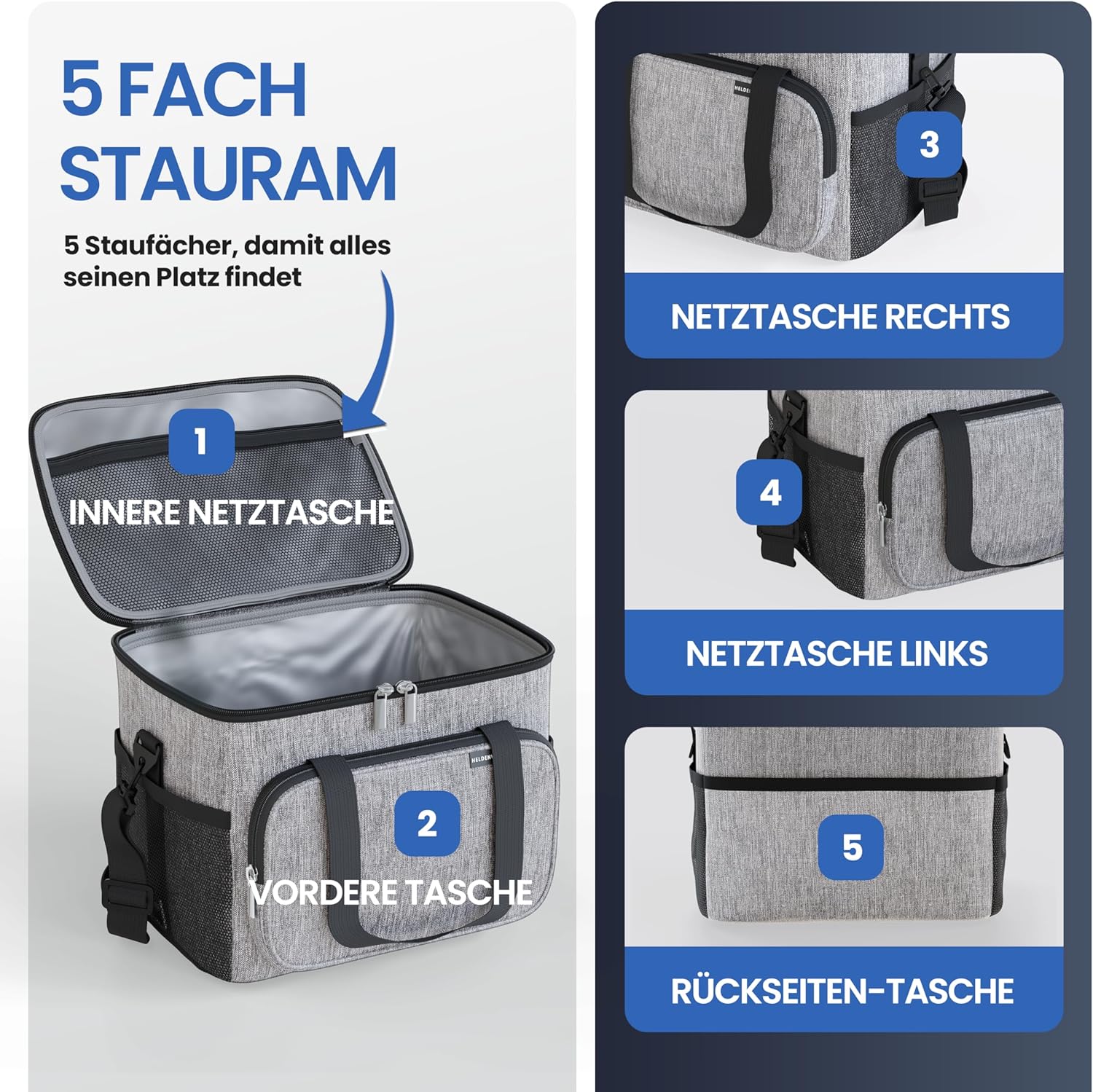 - VIELSEITIGE GRÖssEN UND FARBEN - Erhältlich in den Grössen 20L (klein) und 30L (gross) sowie in den Farben Dunkelgrau, Hellgrau, Grau, Olivgrün und Navyblue. Damit passt unsere Lunch-Tasche perfekt zu Ihrem Bedarf und Stil.