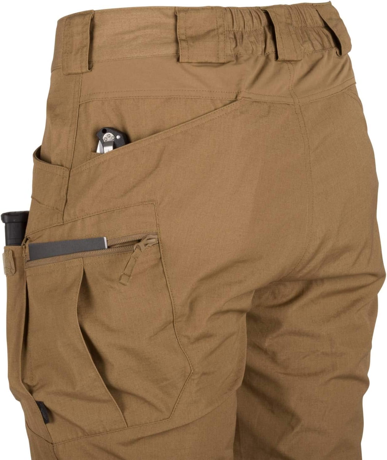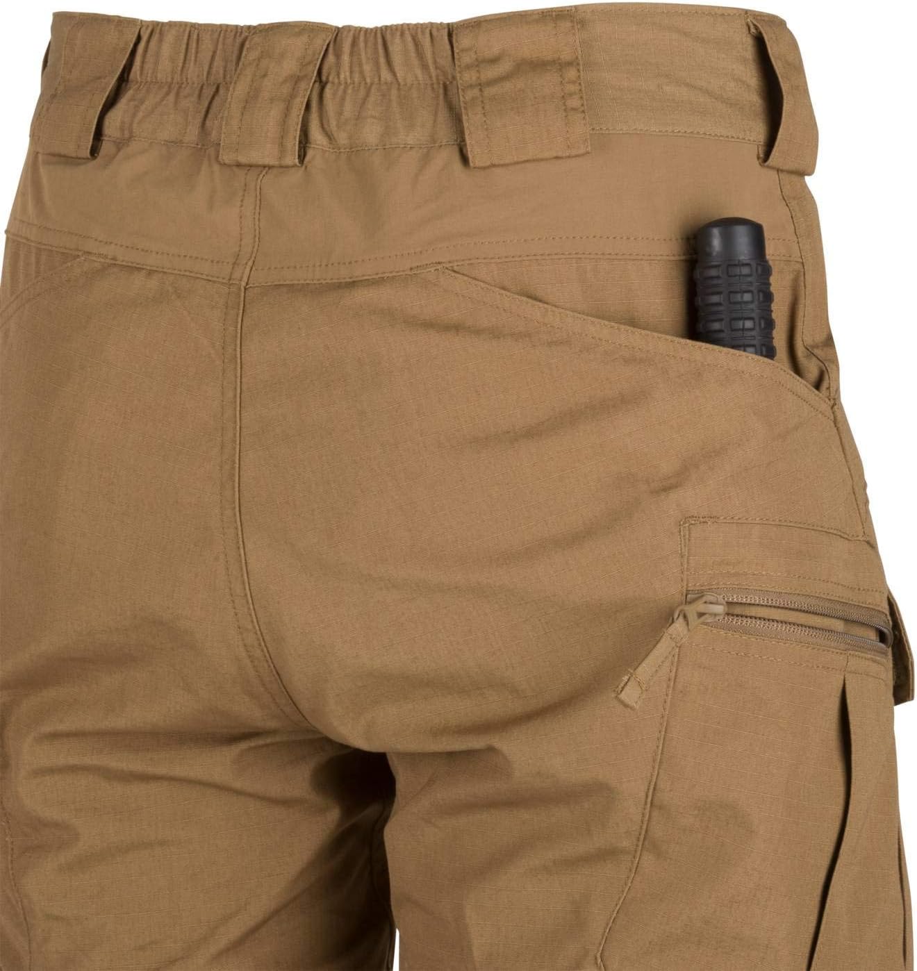 PRODUKTBESCHREIBUNGEN Manche Produkte haben eine Art Kultfolge. Für jeden Hersteller, der vor einer Menge zufriedener Kunden steht, ist nicht nur die grosse Freude, sondern auch die Bestätigung, dass das Produkt stimmt. Im Anschluss an die Popularität der Urban Tactical Pants haben wir beschlossen, ihre neue Version - Urban Tactical Flex Pants - zu veröffentlichen. Obwohl die Hauptkonstruktion der Hosen die gleiche wie in der UTP ist, gibt es einige wichtige Änderungen. Die wichtigste Veränderung ist der Stoff - wir haben uns entschieden, nicht-elastisches NyCo-Gewebe zu verwenden, das als eines der besten und haltbarsten Kleidungsstücke auf dem Markt bekannt ist. Um die Bewegungsfreiheit der Benutzer zu gewährleisten, haben wir uns entschieden, VersaStretch-Elastikeinsätze im Schrittbereich und im Gesässbereich hinzuzufügen. Das Schnitt- und Taschenlayout, das in diesen Hosen verwendet wird, erhält ein ziviles Aussehen, um die Anonymität zu bewahren, während die volle Funktionalität der Kampfhosen beibehalten wird, die taktische Grundvoraussetzungen unterstützen. Der Elastische Gürtel mit Klettverschluss ermöglicht einfache Anpassung. Breite Gürtelschlaufen ermöglichen einen bis zu 50 mm breiten Gürtel, inklusive aller Helikon-Tex Taktikgurte: EDC, UTL oder Cobras. Durch vernünftige Anordnung der Taschen kann die Ausrüstung in der Nähe der Mittelmasse, um die Hüften und Taille herum angeordnet werden. Front- und Gesässtaschenkanten sind verstärkt, um eine konstante Bewegung von Licht oder Messerklammern zu verhindern. Zwei mit Klettverschluss verschlossene Vordertaschen sind gross genug, um ein Smartphone zu tragen - oder sogar ein AR / AK-Waffenmagazin. Die Oberschenkeltaschen mit Reissverschluss sehen flach aus - aber das Design lässt Taschen oder Geldbörsen mit Leichtigkeit tragen. Massgeschneiderte Innentaschen warten darauf, mit Low Profile Protective Pads gefüllt zu werden. Drei Stoffarten und eine grosse Auswahl an Farben ermöglichen es, die Hose an den Rest der Garderobe oder an.