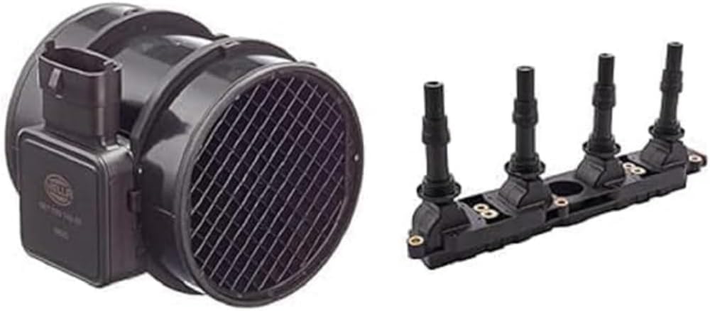 HELLA 8ET 009 142-031 Luftmassenmesser - Rohrstutzen & 5DA 358 000-041 Zündspule - 12V - 5-polig - B