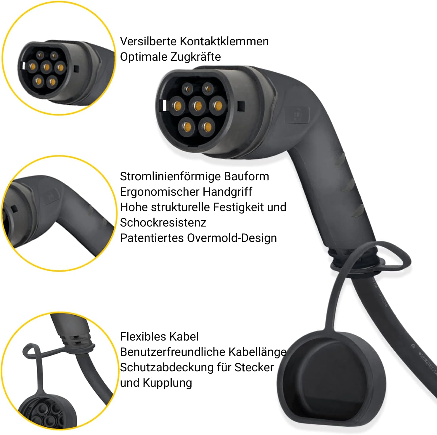 - Durch das leichte und kompakte Design ist dieses Typ 2 Ladekabel mit einer Ladeleistung von bis zu 3,7 kW besonders für Plug-In Hybride geeignet; Das 6m lange Kabel ermöglicht eine einfache Handhabung ohne gefährliche Stolperfallen