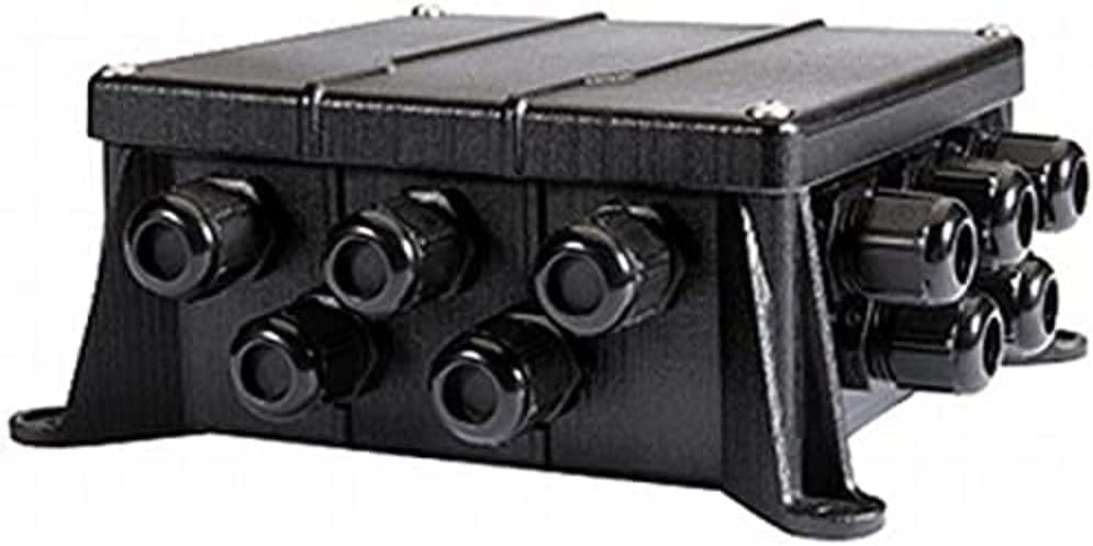 - Bestückt mit 12 Kabelverschraubungen: 10 x Klemmbereich 3,5 - 10 mm, 2 x Klemmbereich 9 - 18 mm