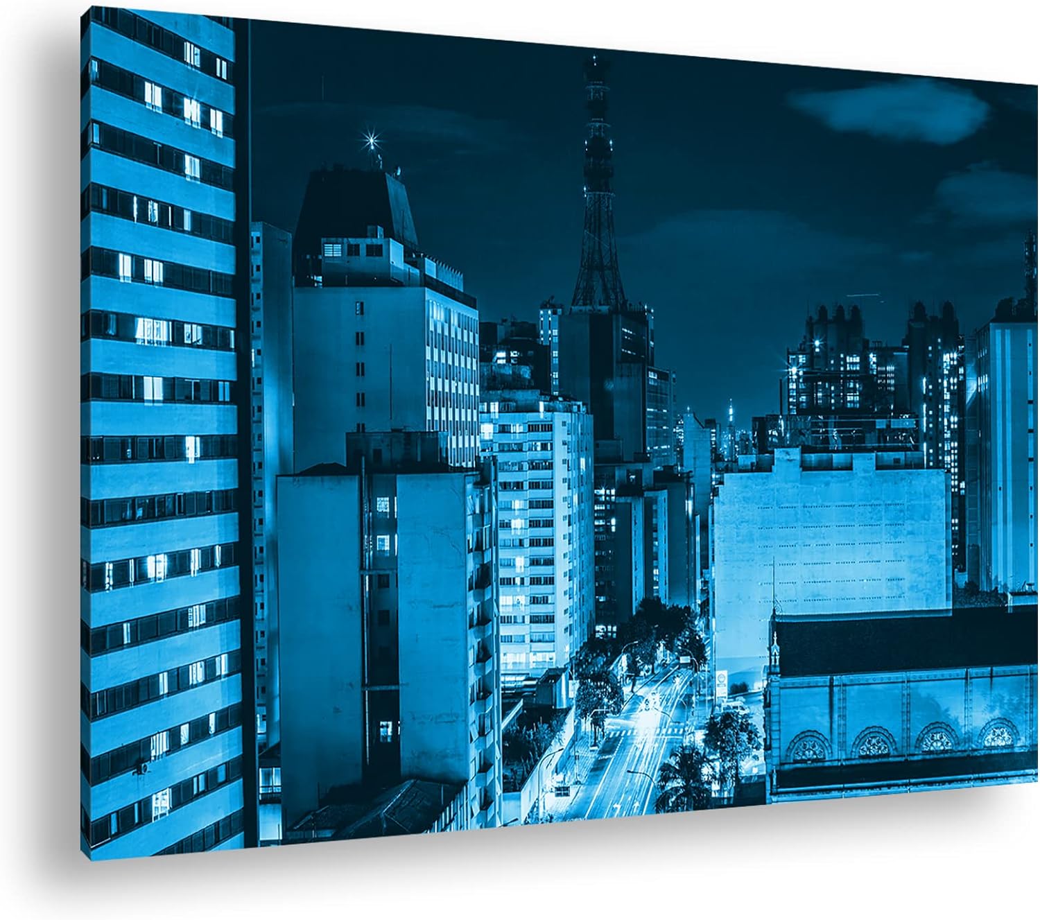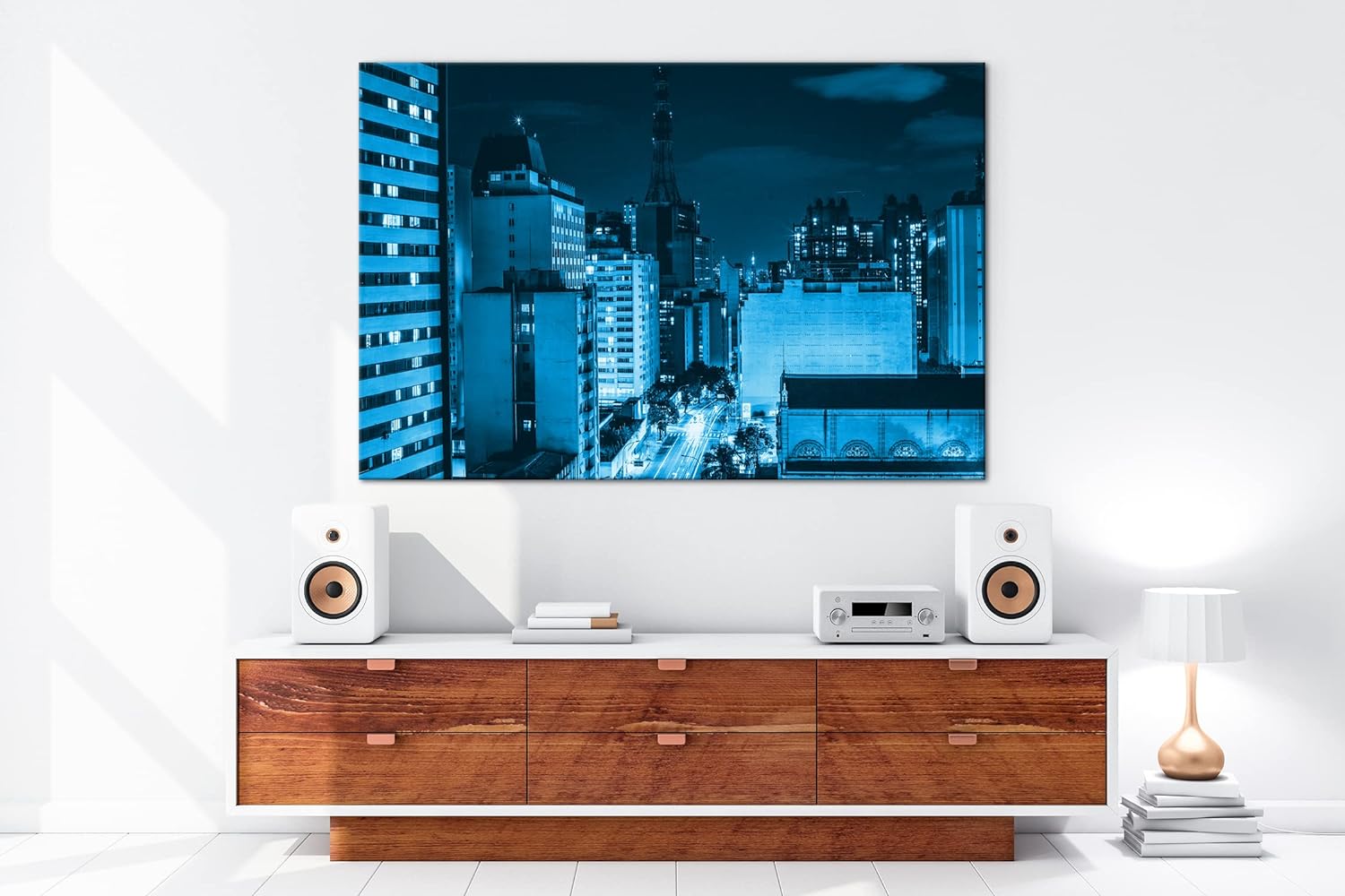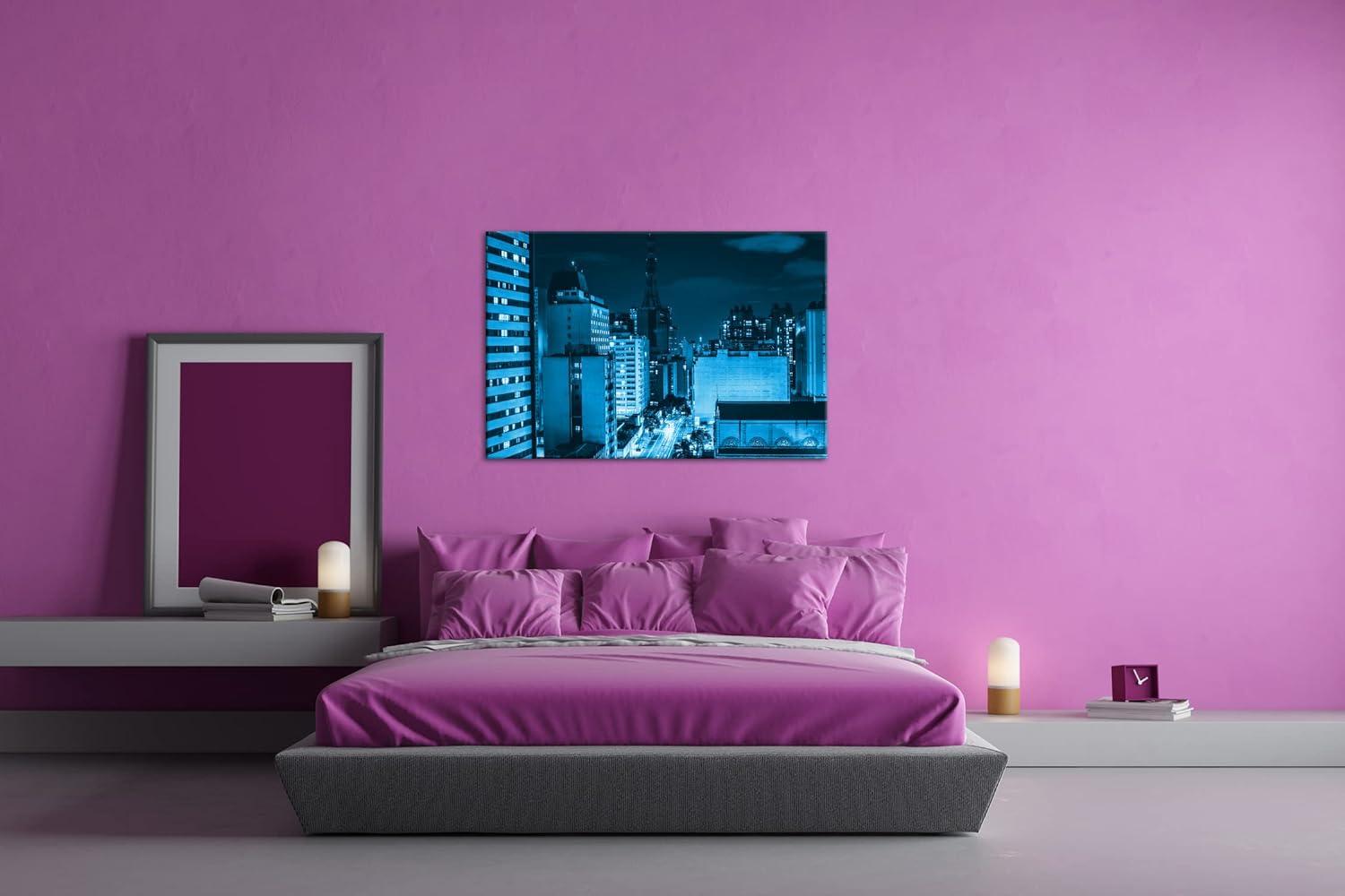 hellerleuchteten Strassen der Stadt Format: 100x70 Effekt: Monocrome Blau als Leinwand, Motiv fertig