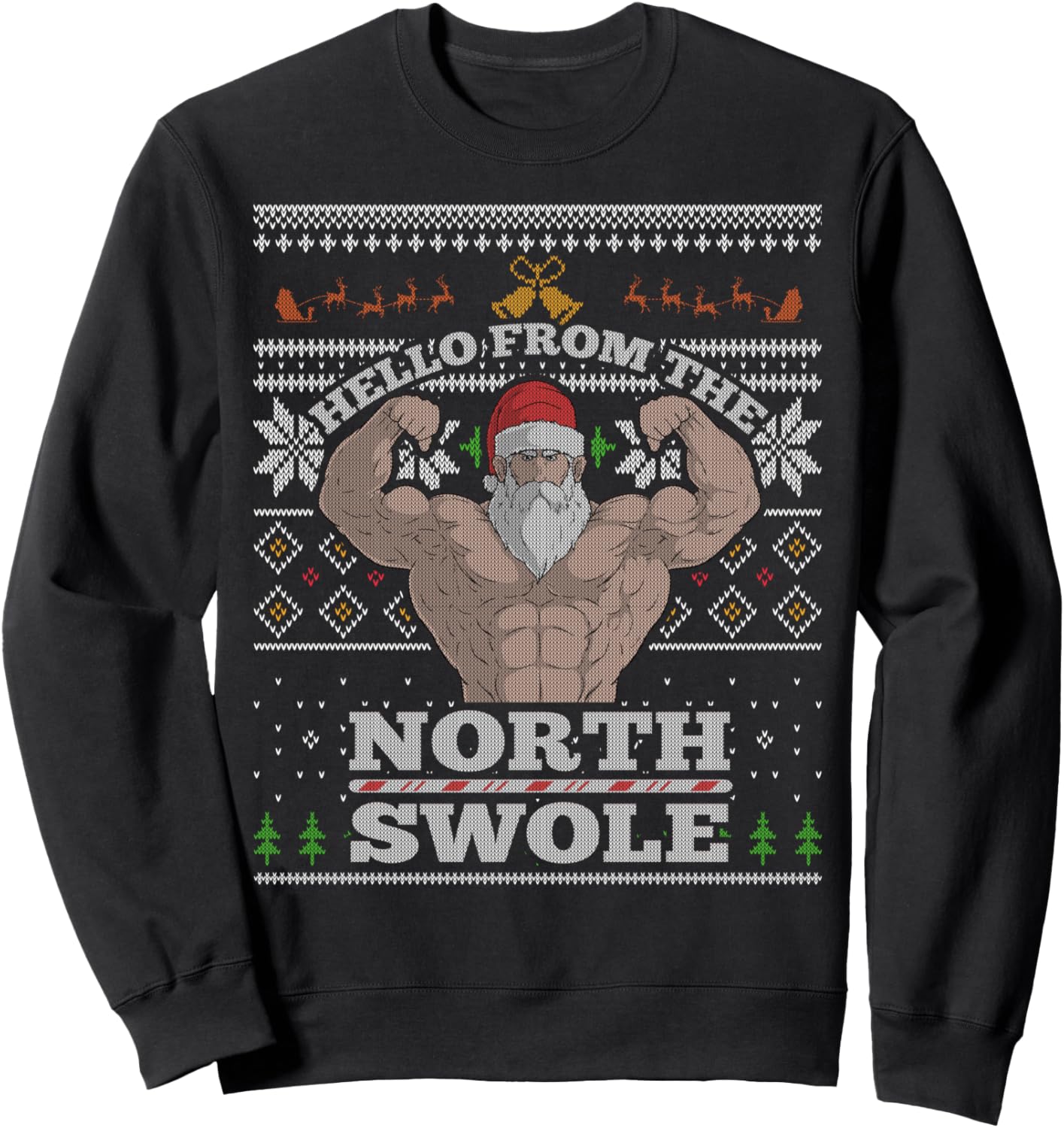 PRODUKTBESCHREIBUNGEN A funny festive Christmas novelty pun design. Features a muscular Santa Claus flexing, and showing off his masculine muscles. Give this to someone that loves to workout, exercise, lift weights, and punny holiday humor.