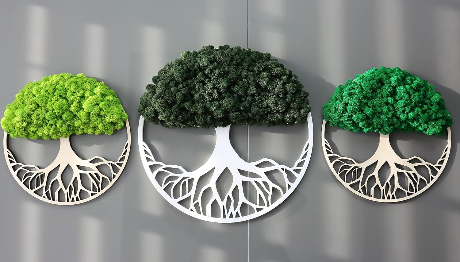 - Rentiermoos - wir verwenden das hochwertigste finnische Konserviertes Moos zur Herstellung unserer Wohnzimmer Deko; Für die Herstellung der Mooswand verwenden wir nur die oberen Ableger des Mooses, um einen schönen Wolkeneffect zu erzielen