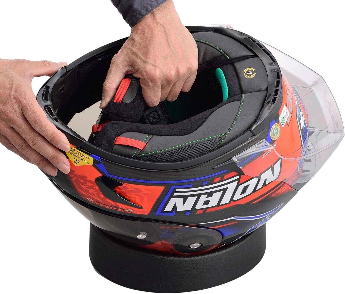 - Rutschfester Helmring um Arbeiten am Helm durchzuführen, z.B. Einbau von Bluetooth-Headsets, Visierwechseln, Polster tauschen oder einfach zum Trocknen.