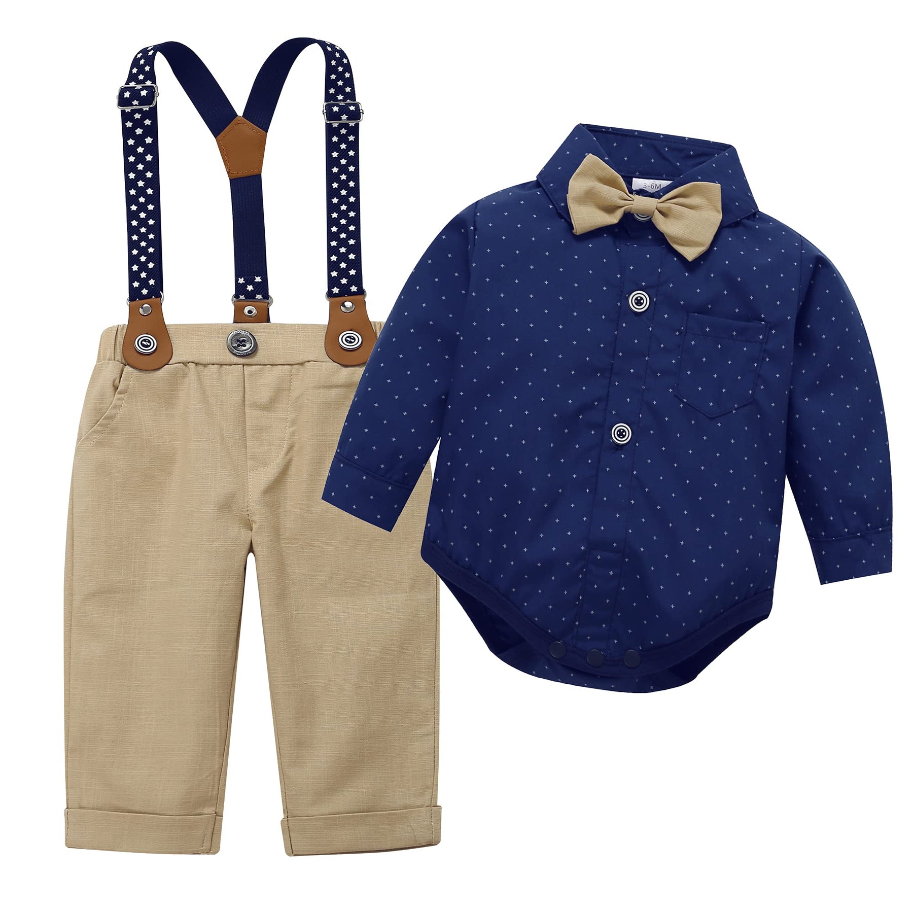 - Paket: 1 * Langarm strampler + 1 * Hosenträgerhose + 1 *abnehmbare Fliege.