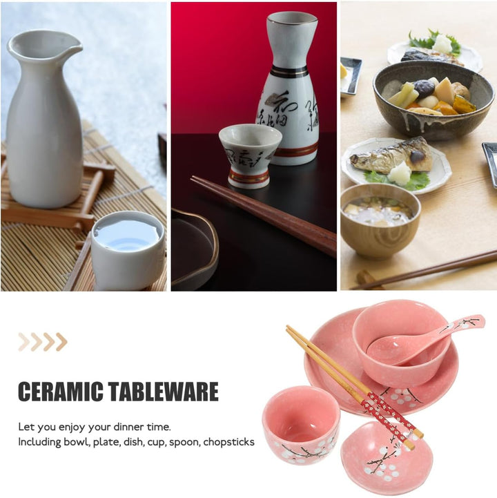 - Japanisches Geschirrset Inklusive Schüssel, Teller, Teller, Tasse, Löffel, Essstäbchen.