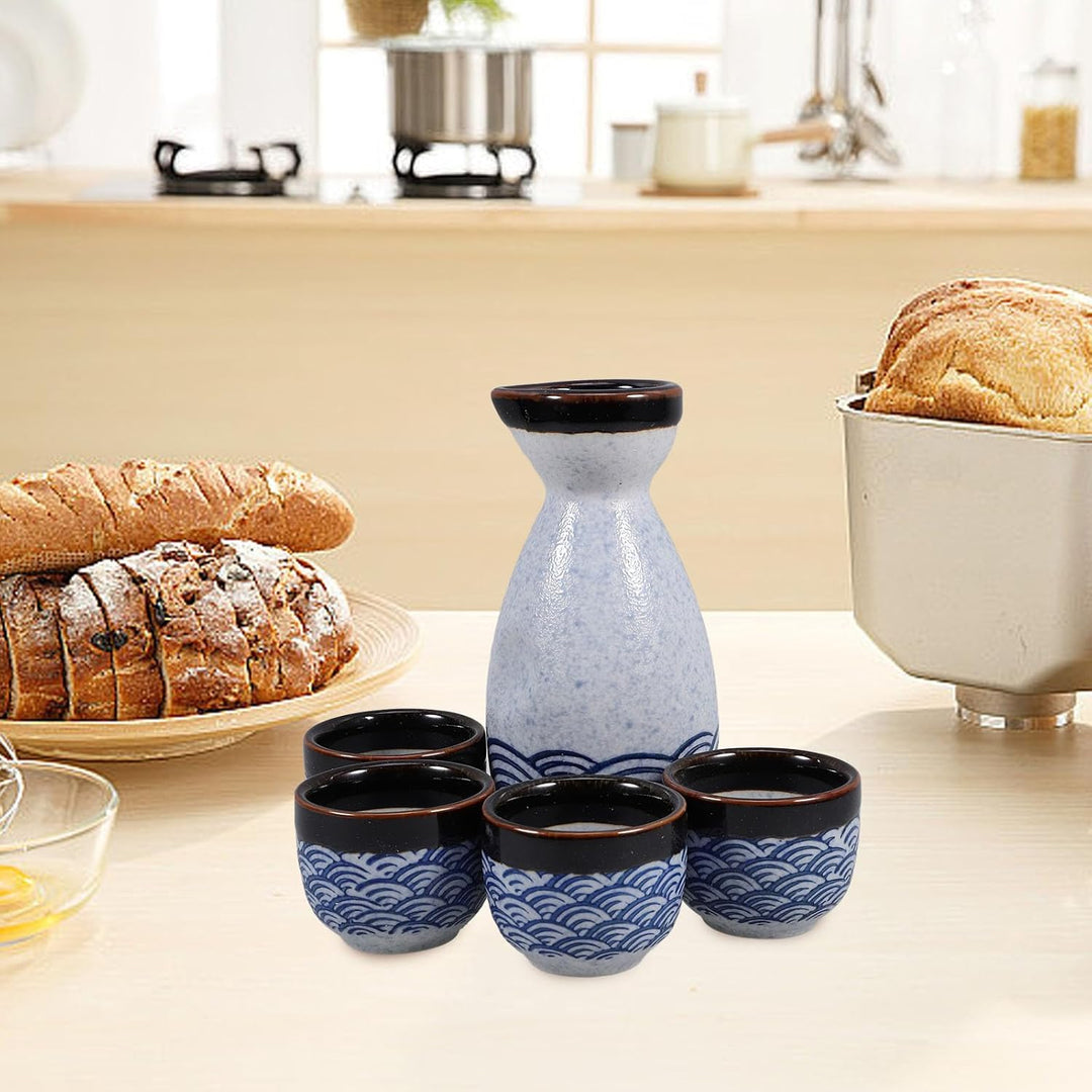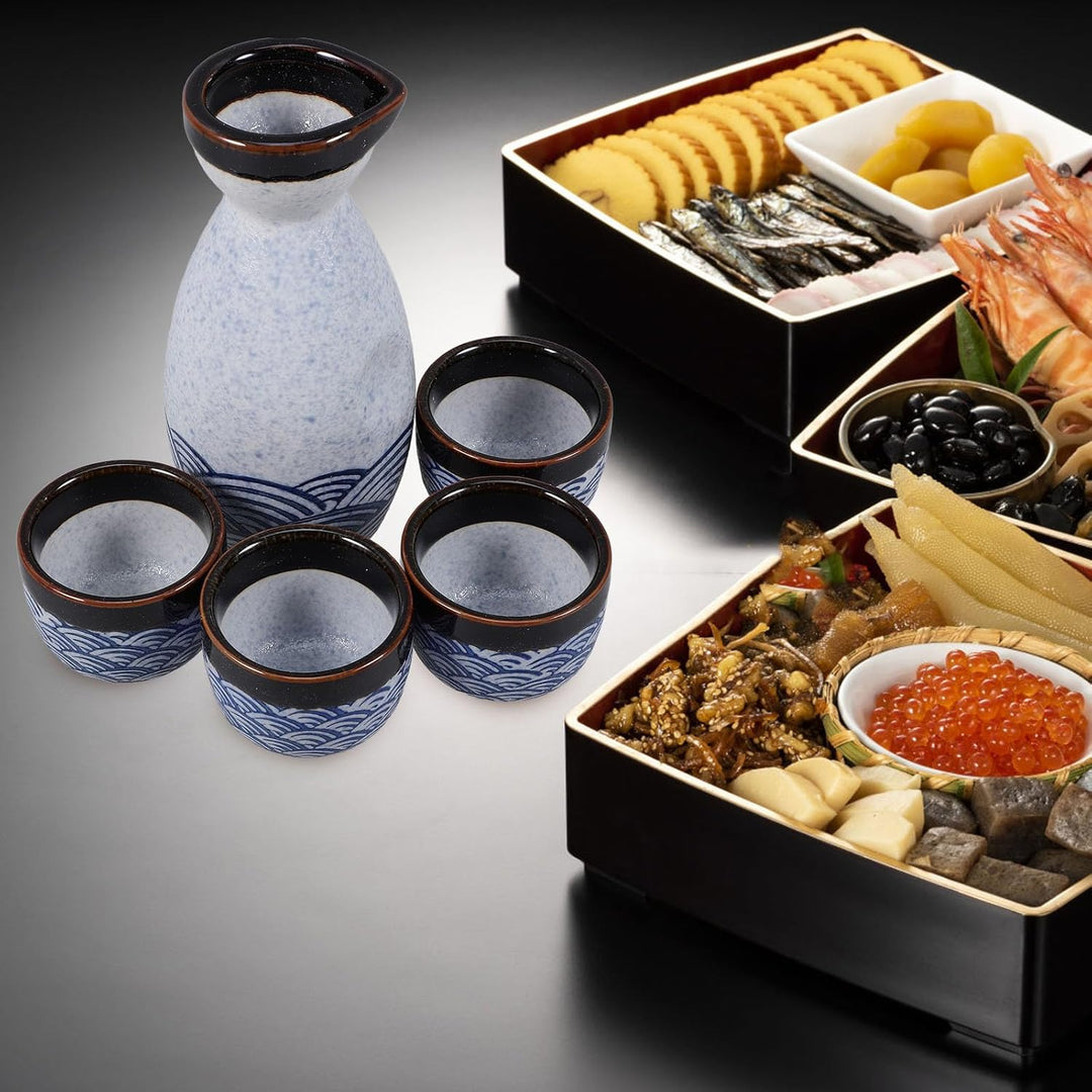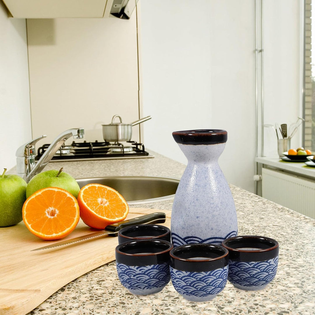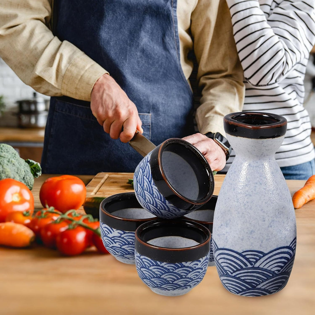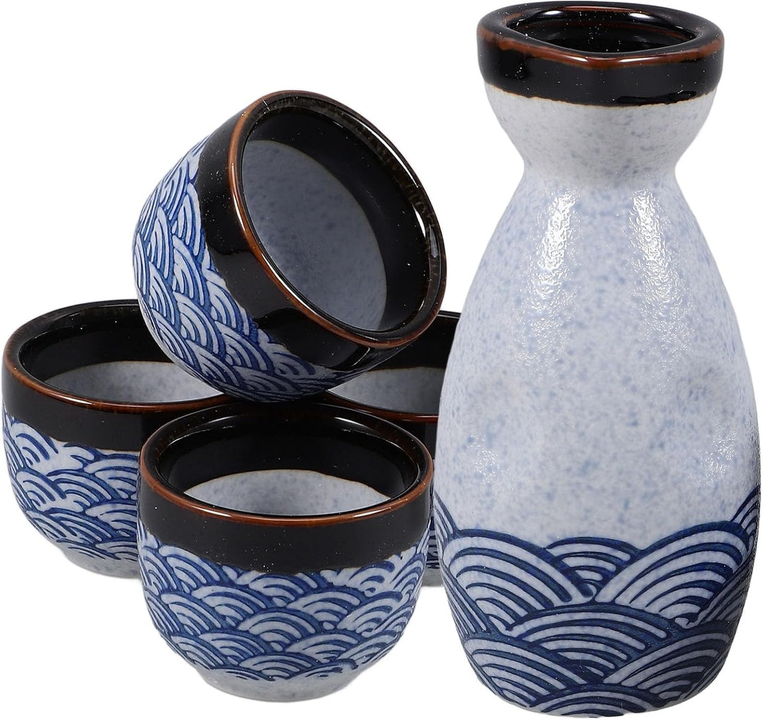 - Das Sake-Set besteht aus Keramik, die sicher in heisses Wasser oder in die Mikrowelle gestellt werden kann, um bei kaltem Wetter warmen Sake zu servieren.