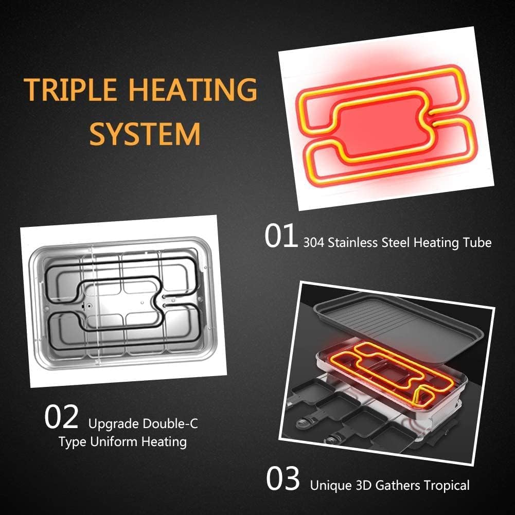 • 【Doppel-C Heizrohr Raklettgerät】Das doppelte C-förmige Heizrohr erwärmt die Lebensmittel gleichmässiger und schneller. Sie können Ihr Essen in kurzer Zeit geniessen.