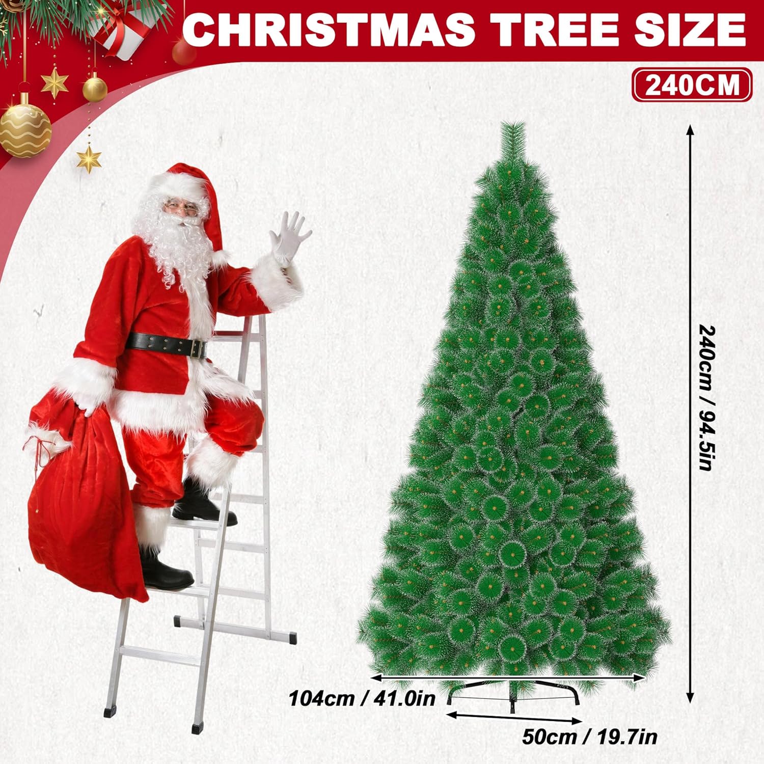 - Das Weihnachten ist 240cm hoch mit 450 Zweigspitzen, Bauteile inkl. 4 Baumteile und den Metall Ständer.