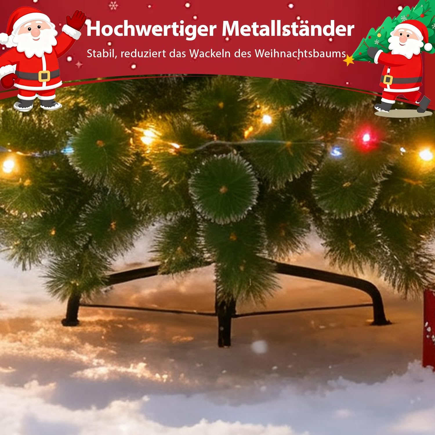 - Der Tannenbaum sieht immer frisch und schön aus. Die robuste Baumbasis bietet Stabilität, um Ihren Baum hoch zu halten und Brüche zu vermeiden, damit Ihr Baum die ganze Saison über steht.