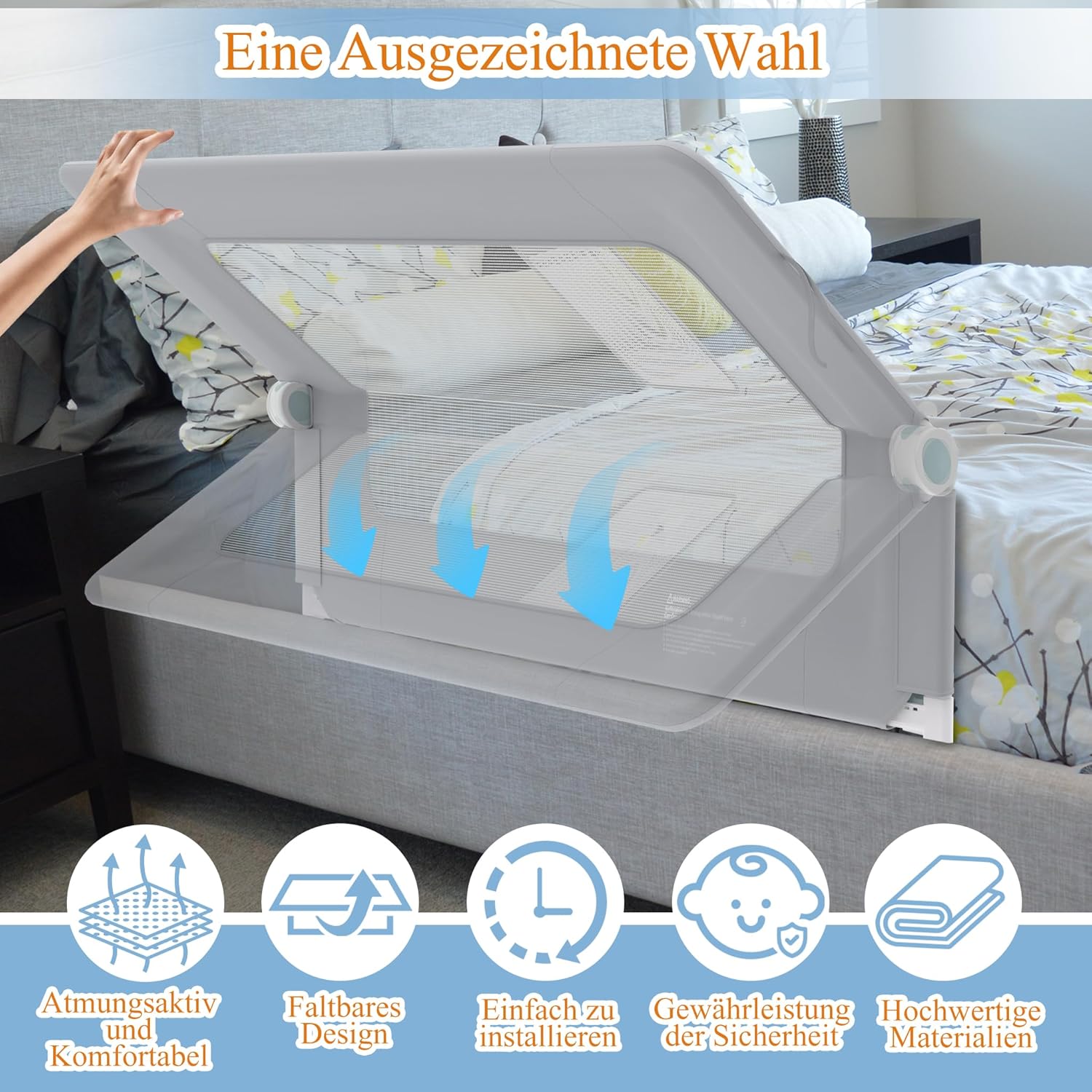 HENGMEI Rausfallschutz Bett 150 cm Bettgitter Bettschutzgitter Kinderbettgitter Zusammenklappbar um