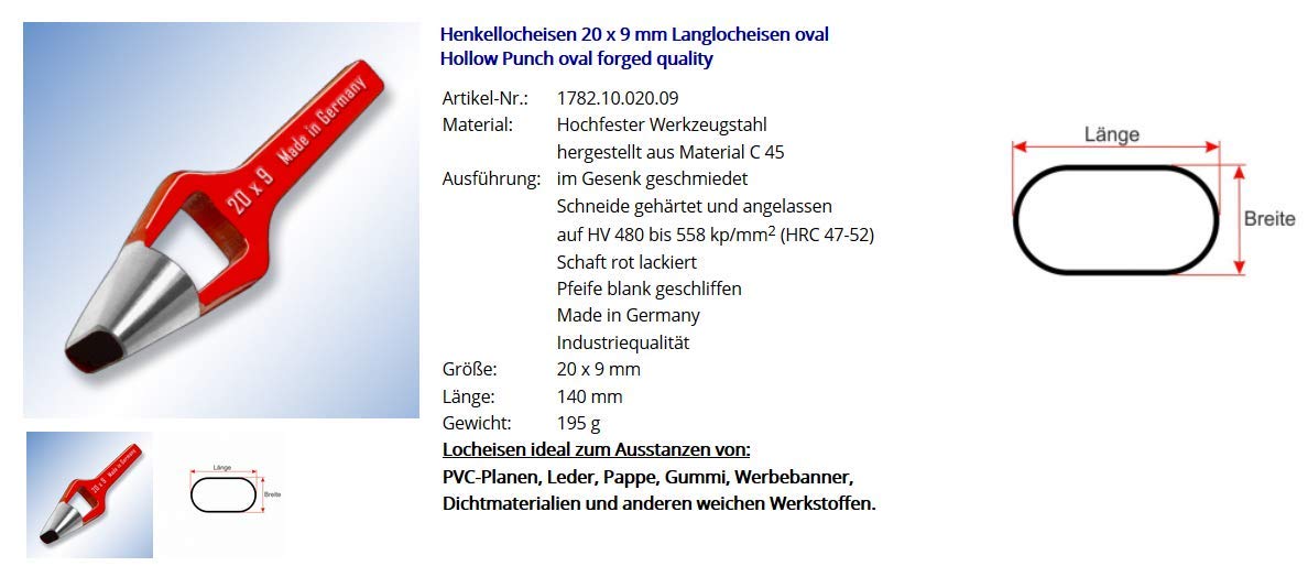 Henkellocheisen 20 x 9 mm Langlocheisen oval Locheisen geschmiedet