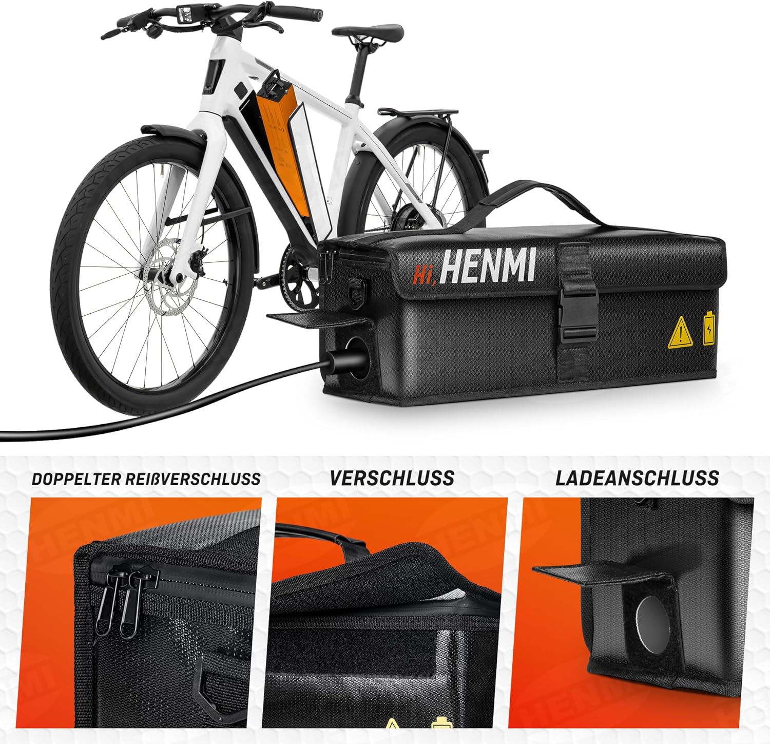 - Sichere Ebike Akku Tasche: 3-Lagen-Schutz, die Auskleidung besteht aus Glasfasergewebe, feuerfest bis 1000°C, und die äussere Schicht besteht aus Silikonfasergewebe, um zu verhindern, dass die Batterie in Wasser eindringt.