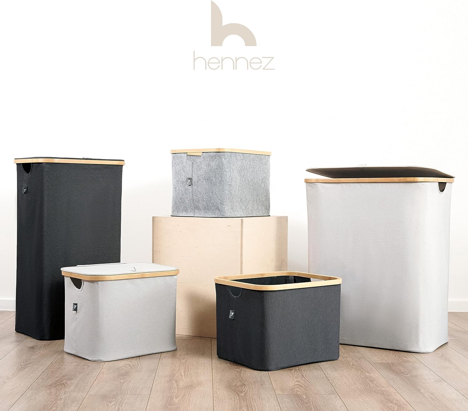 HENNEZ 100L Wäschekorb mit Deckel Grau - herausnehmbaren Wäschesack Wäschesammler schmal mit Deckel