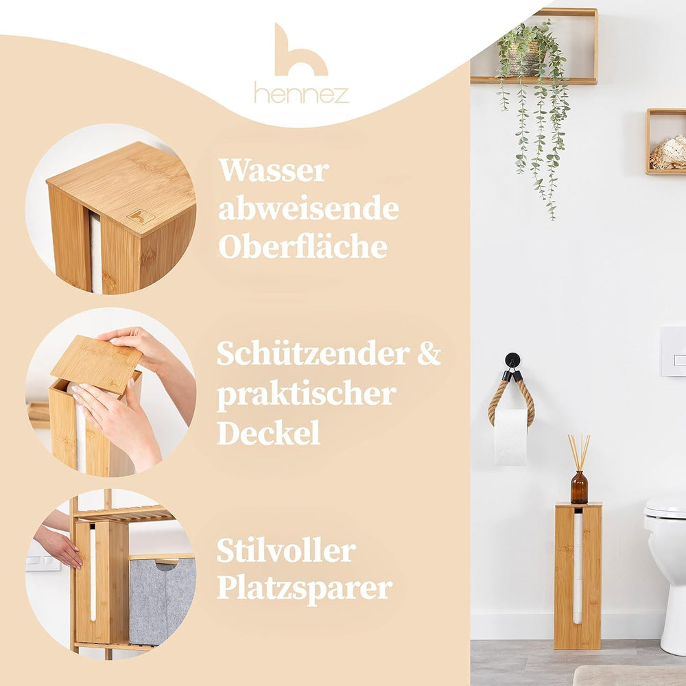- PRAKTISCHE WC-ROLLEN AUFBEWAHRUNG: Halte dein Badezimmer ordentlich und organisiert mit der Hennez Toilettenpapier Aufbewahrung Holz im bambus bad