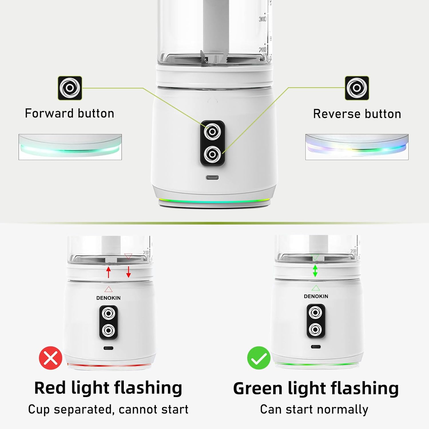 - đčăUSB-Aufladungă Der Tragbarer Mixer ist wie eine Sportflasche gestaltet und verfĂŒgt ĂŒber einen leuchtenden Boden (der gleichzeitig als Batterieanzeige dient). Mit einer vollen Ladung schafft er 10â15 kontinuierliche Zyklen. Das mitgelieferte