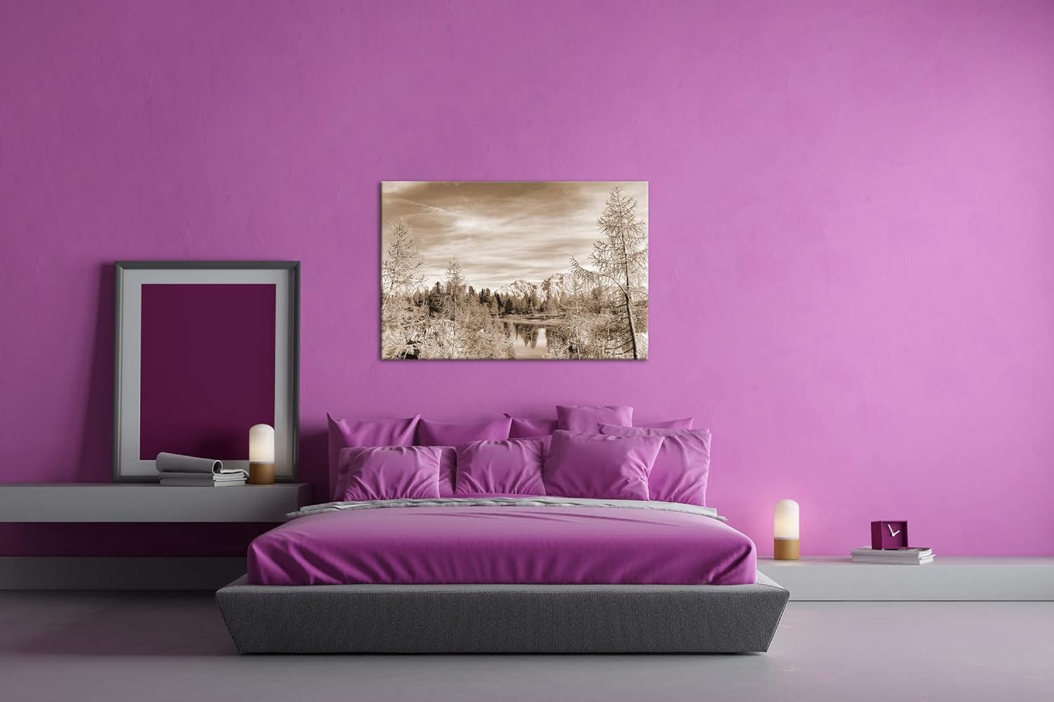 Herbstliche Berglandschaft der Dolomiten Format: 60x40 als Leinwand, Effekt: Sepia, Motiv fertig ger