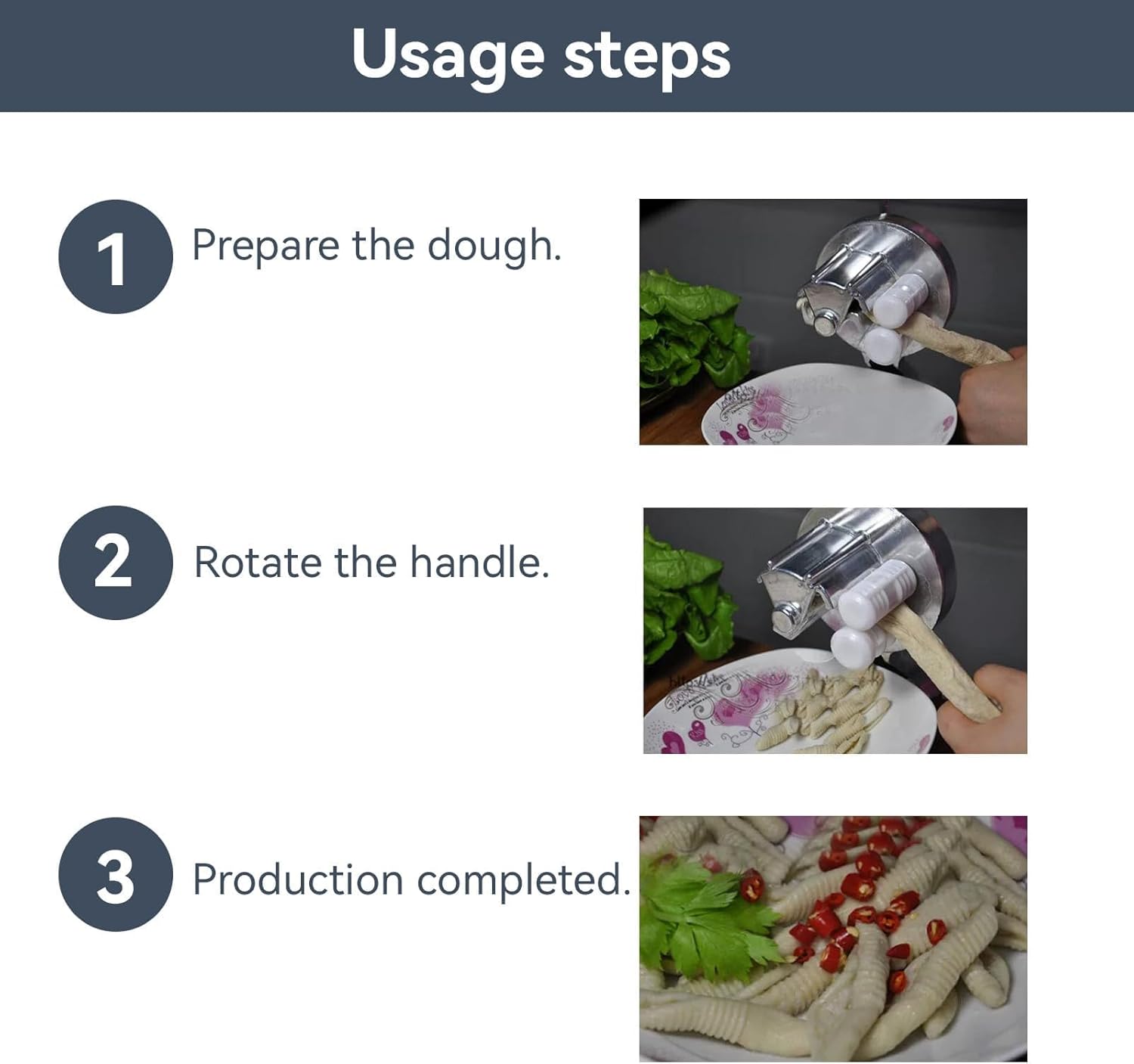 - Handgefertigt: Die Nudelmaschine kurbelt den gesamten Prozess von Hand an, die manuelle Nudelmaschine kann köstliche Nudeln herstellen.