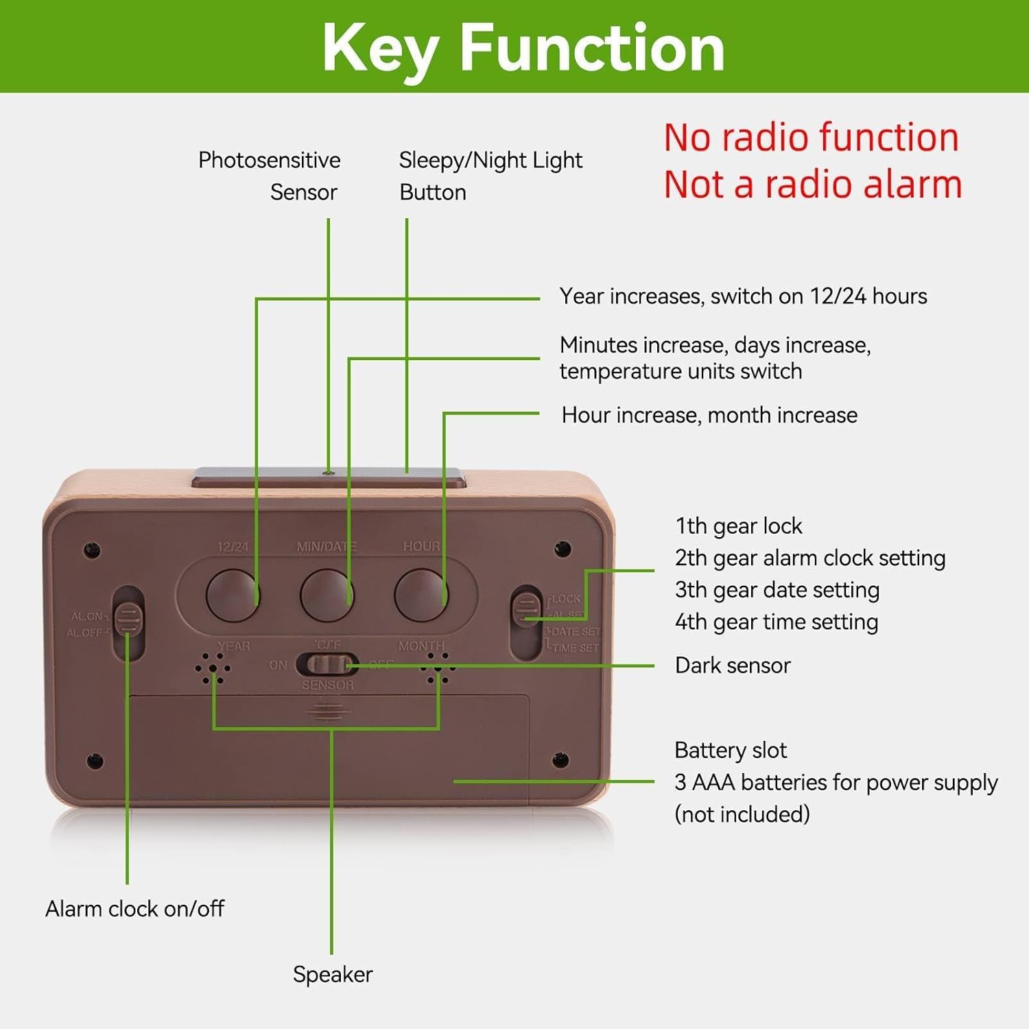 - ⏰ Tastenbedienung: USB-Digitalwecker auf der Rückseite Digitalwecker hat Tasten, Holz-Digitalwecker kann die Zeit mit Tasten ändern, mit Tasten, um die Hintergrundbeleuchtung einzuschalten