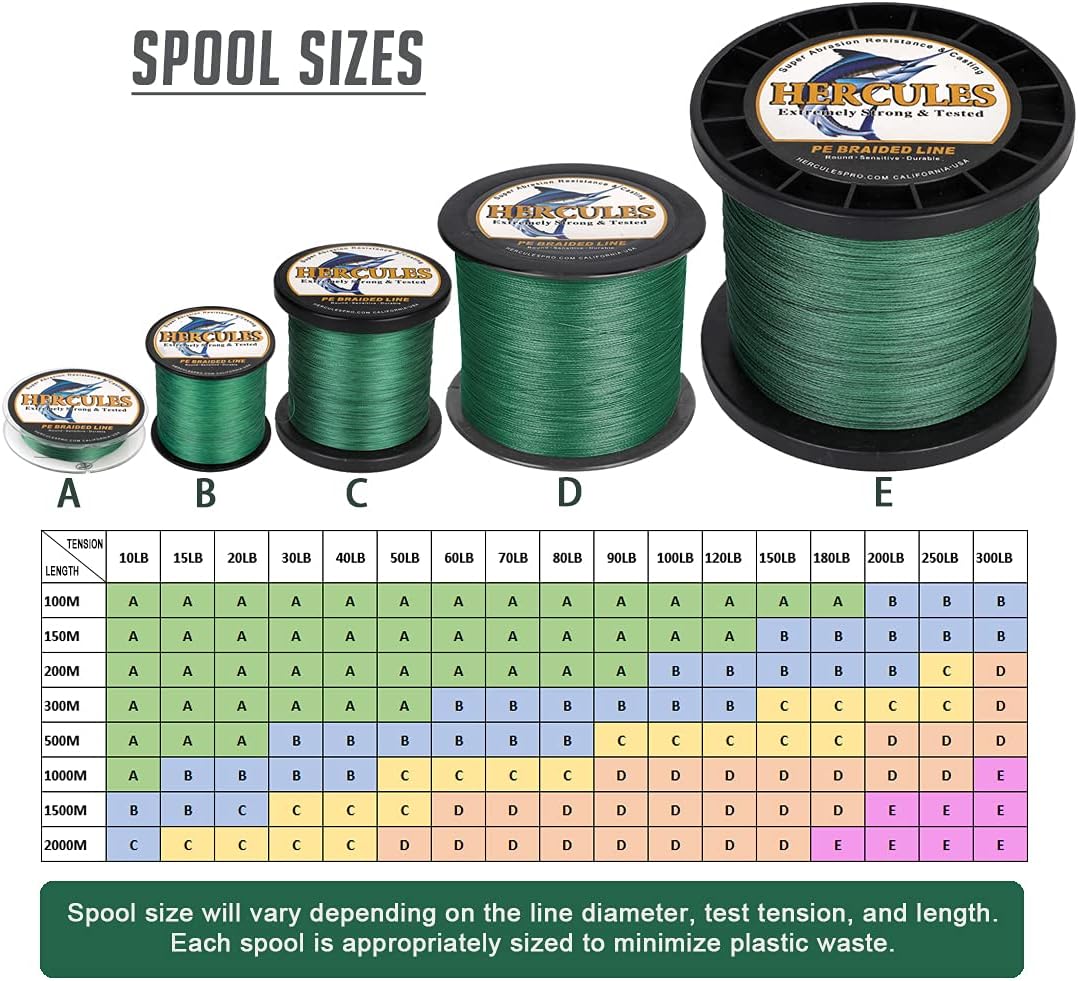 HERCULES Super Cast 100m - 2000m Yards Geflochtene Angelschnur 10lb - 300lb Test für Salzwasser Süss