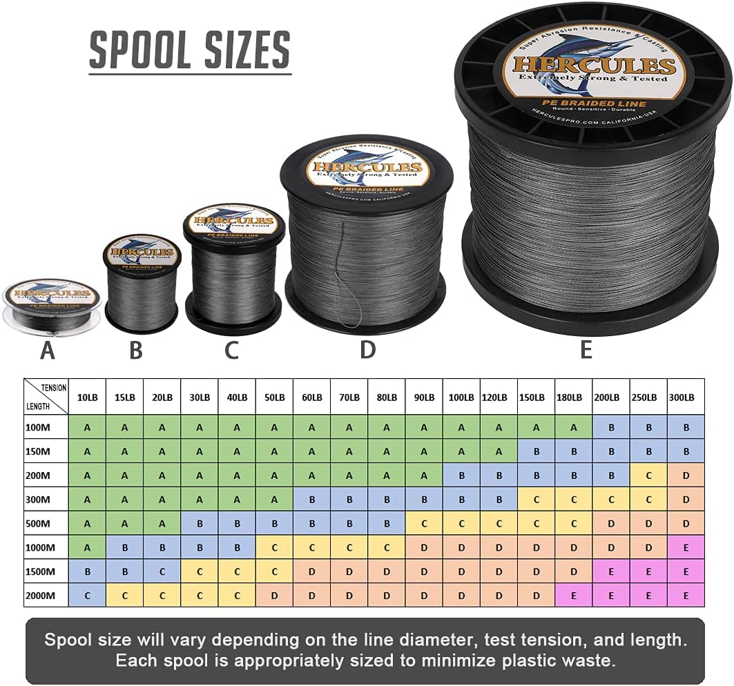 HERCULES Super Cast 100m - 2000m Yards Geflochtene Angelschnur 10lb - 300lb Test für Salzwasser Süss