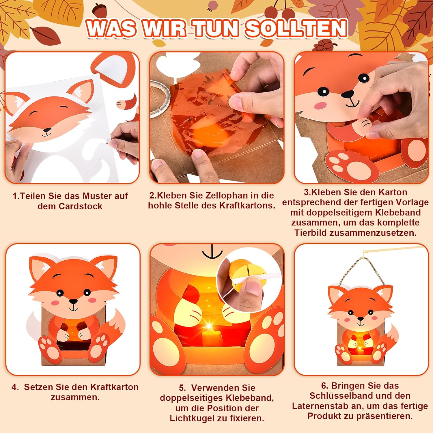 - Deko für den Herbst: Diese laterne ist sehr einfach zu installieren, richten sie einfach die druckknöpfe auf dem kartenstreifen mit dem kartenlöchern auf der tierkarte aus, und dann können sie die Installation beenden, kinder können es auch leicht