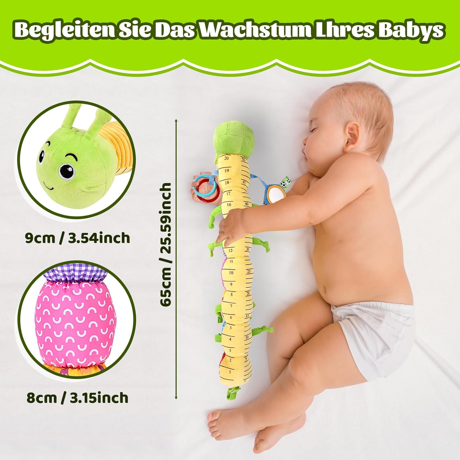 • Linealspielzeug zur Aufzeichnung des Heranwachsens des Babys: Unsere raupe musikspielzeug hat dimensionen auf seinem bauch, markiert in lineal design, dass die daten in cm oder zoll angezeigt werden. Das einzigartige lineal design ermöglicht es müttern